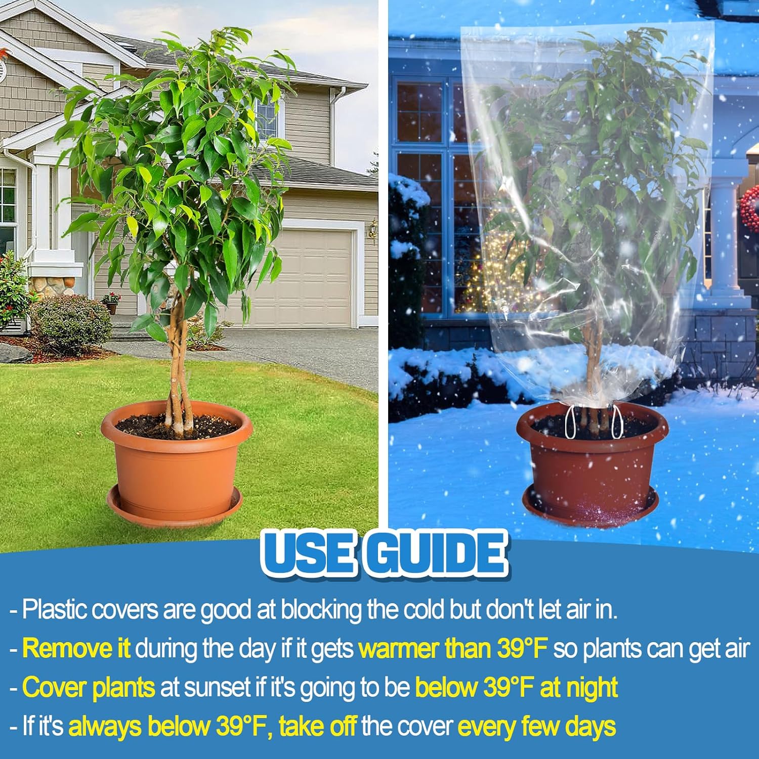 - [Large Size] Each plastic plant cover measures 47.2" x 70.8" and is suitable for various large plants indoors or outdoors, such as saplings, shrubs, mango trees, potted lemons, and crops. 2 pieces come in a set, which can meet the needs of large potted plants and small trees.