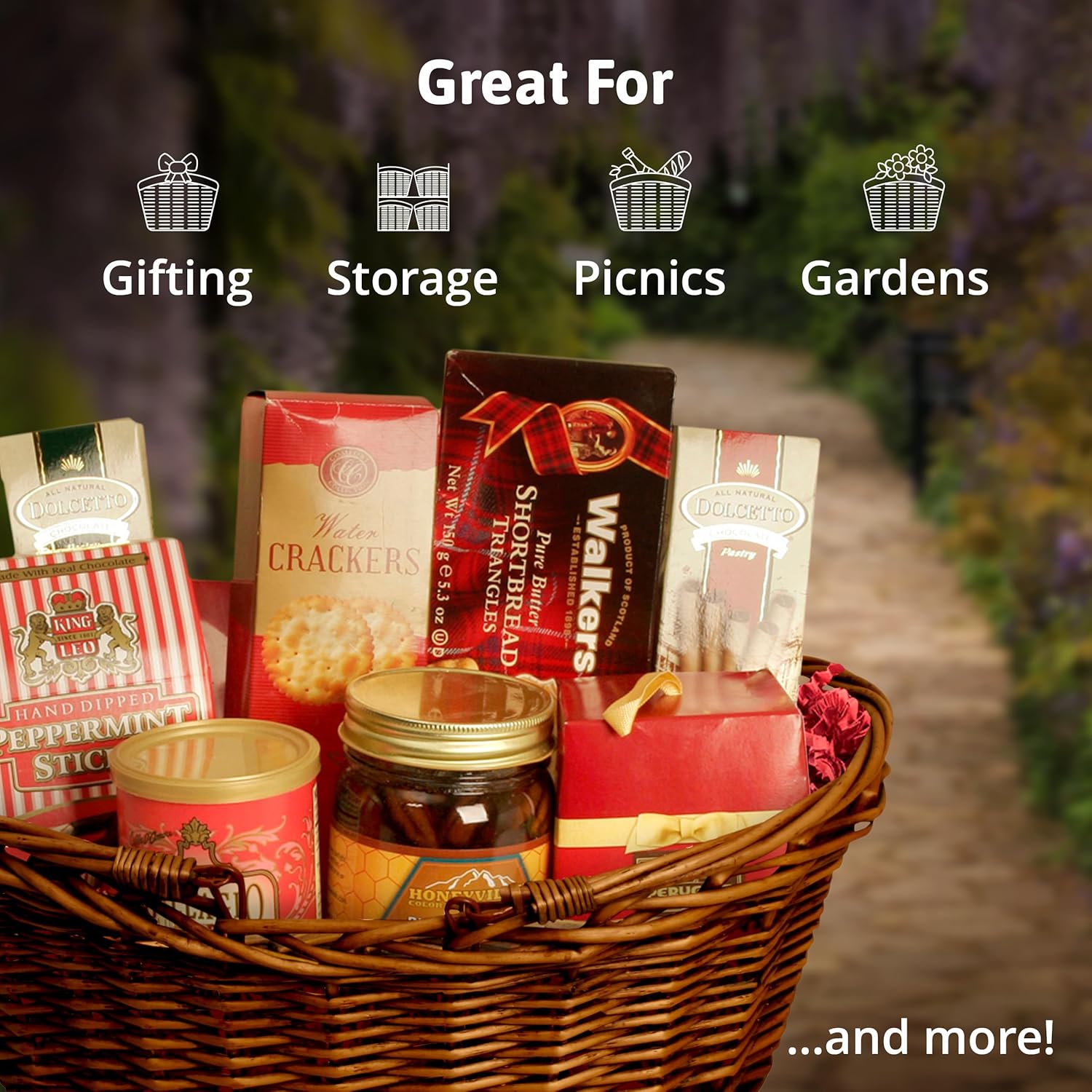 - WICKER BASKET: Create an attractive gift basket for family and friends. Our large willow picnic basket has folding handles that fold down for storage or up for easy carrying, so you can take it with you anywhere or use it as storage and organization for household items.