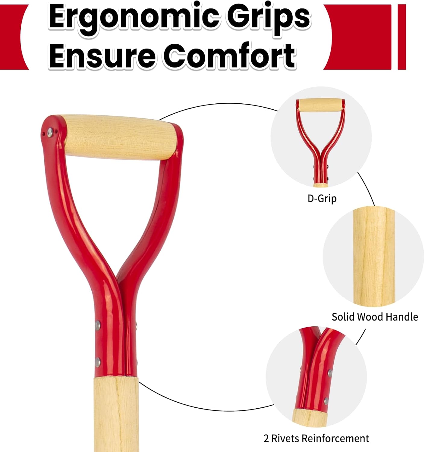 - Efficient Design: The 4 tines design of the garden fork saves time and effort when digging, and the ergonomic D-shaped wooden handle provides a secure and comfortable grip, reduces hand fatigue during prolonged use, and improves gardening efficiency.