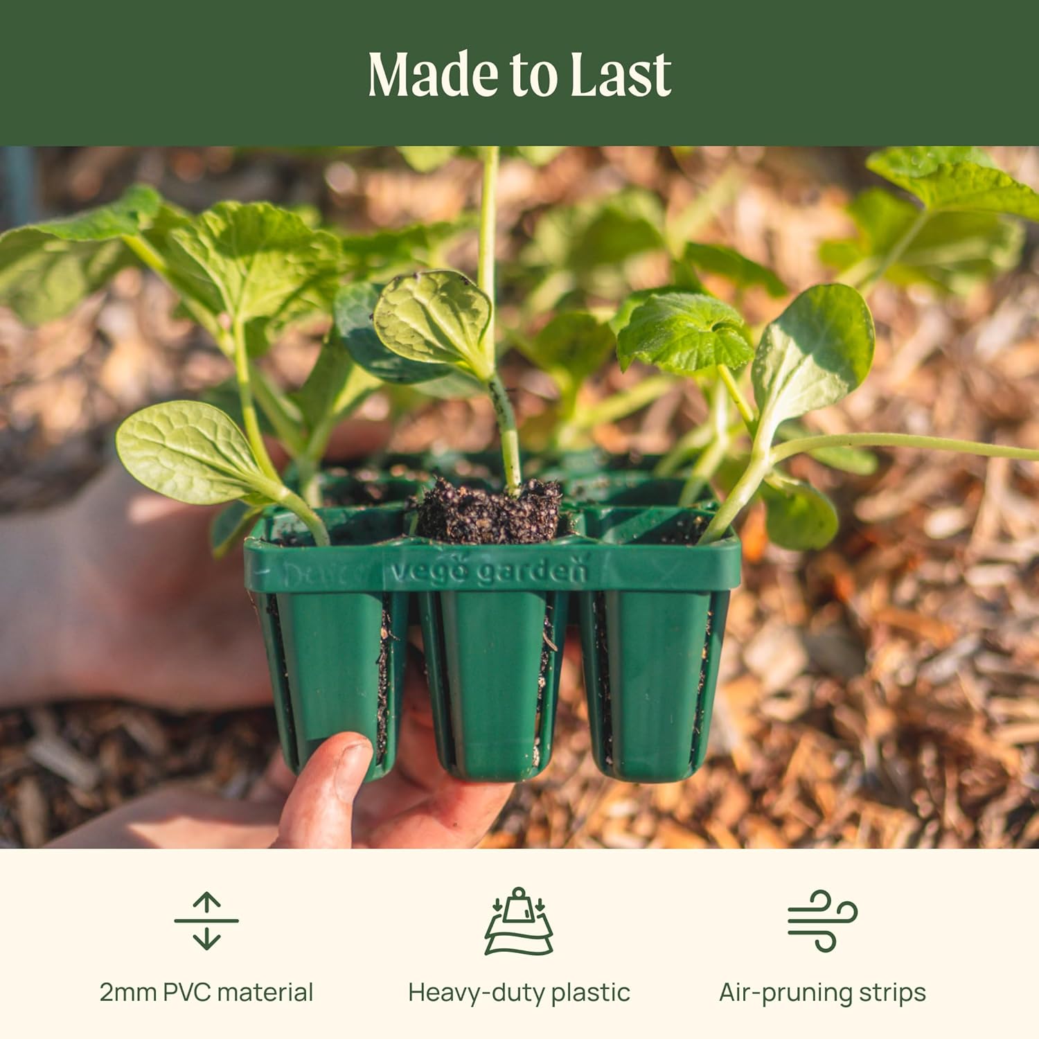 - 【Made of High-quality Thicken 2 mm Material】Vego Garden seed trays use 2mm PVC material, stronger and not easy to deform, can be reused many times. The thickened bottom edge material that can withstand the pressure, it would not lose soil or soak up too much water, and effectively cultivate seeds