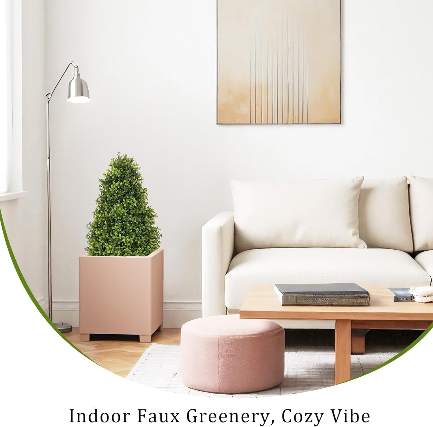 30" Artificial Boxwood Faux Plants Outdoor, UV Resistant Topiary Trees Realistic Cone-Shaped Fake Bushes and Shrubs Potted Fakeplants Set of 2 for Front Porch Patio Outside Planter Decor
