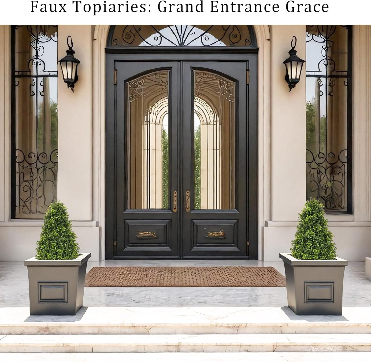 - Lifelike & Elegant Design - Realistic faux plants outdoor with lifelike boxwood foliage, multi-textured leaves, and a natural-looking faux bark trunk. The rich green tones of this artificial topiary for outdoors and indoors bring charm and elegance to any setting