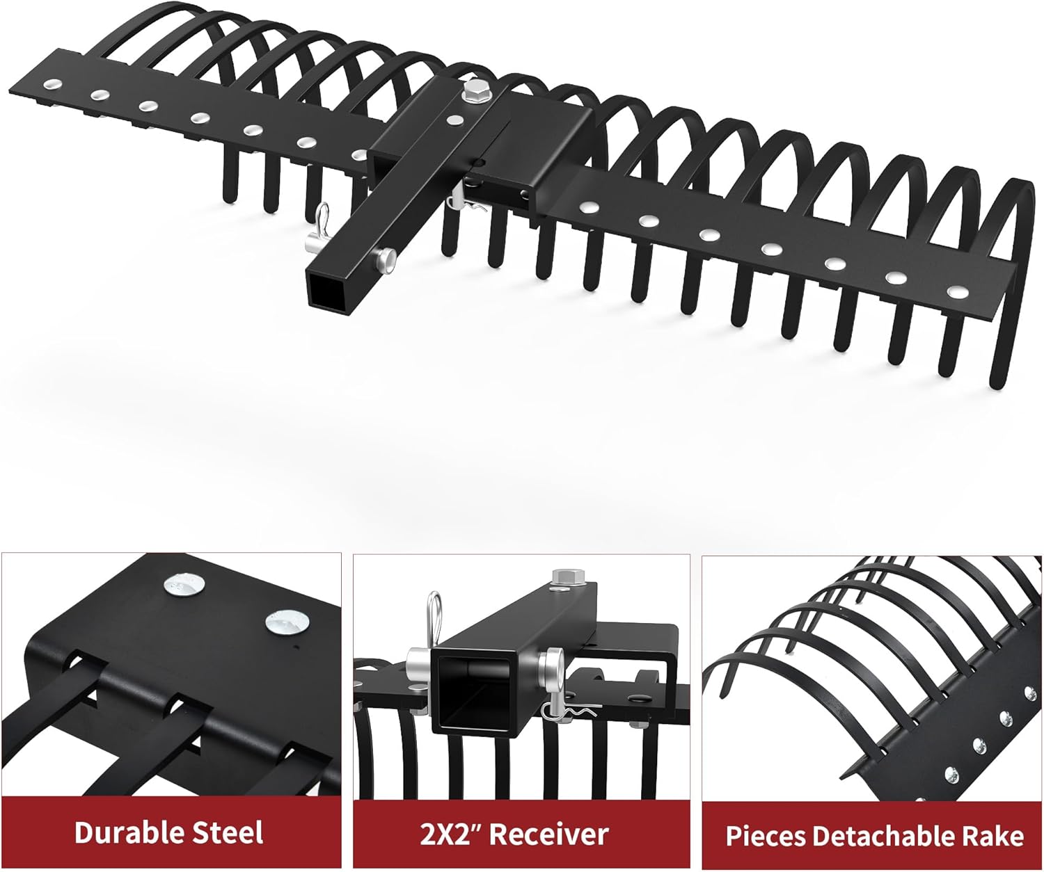 YITAMOTOR 4FT Tractors Rake 17 Pine Straw Rake Fits 2" Receiver for Lawn Tractors or ATV/UTV