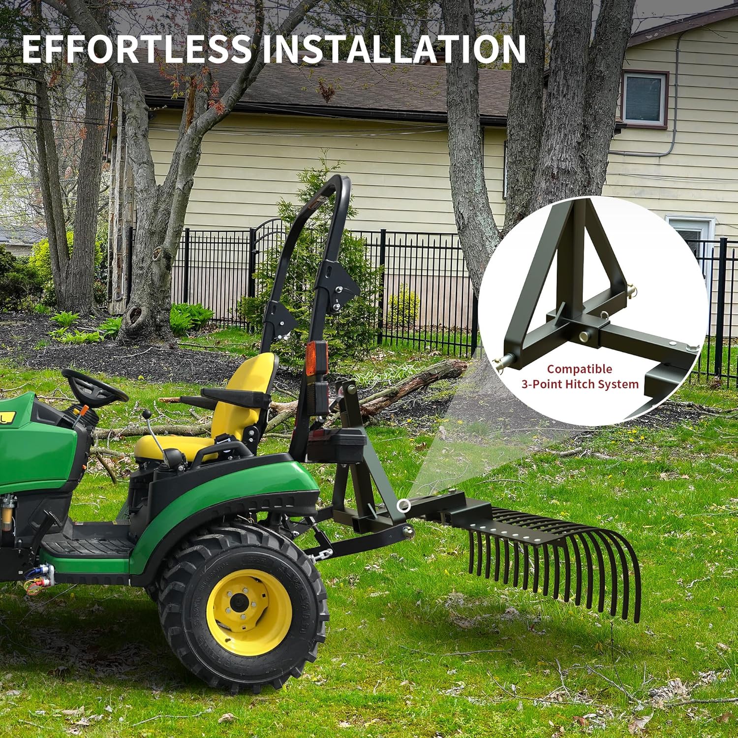 - 48" Working Width:This rake covers more ground, making it efficient for landscaping tasks, saving down the time it takes to complete the job.