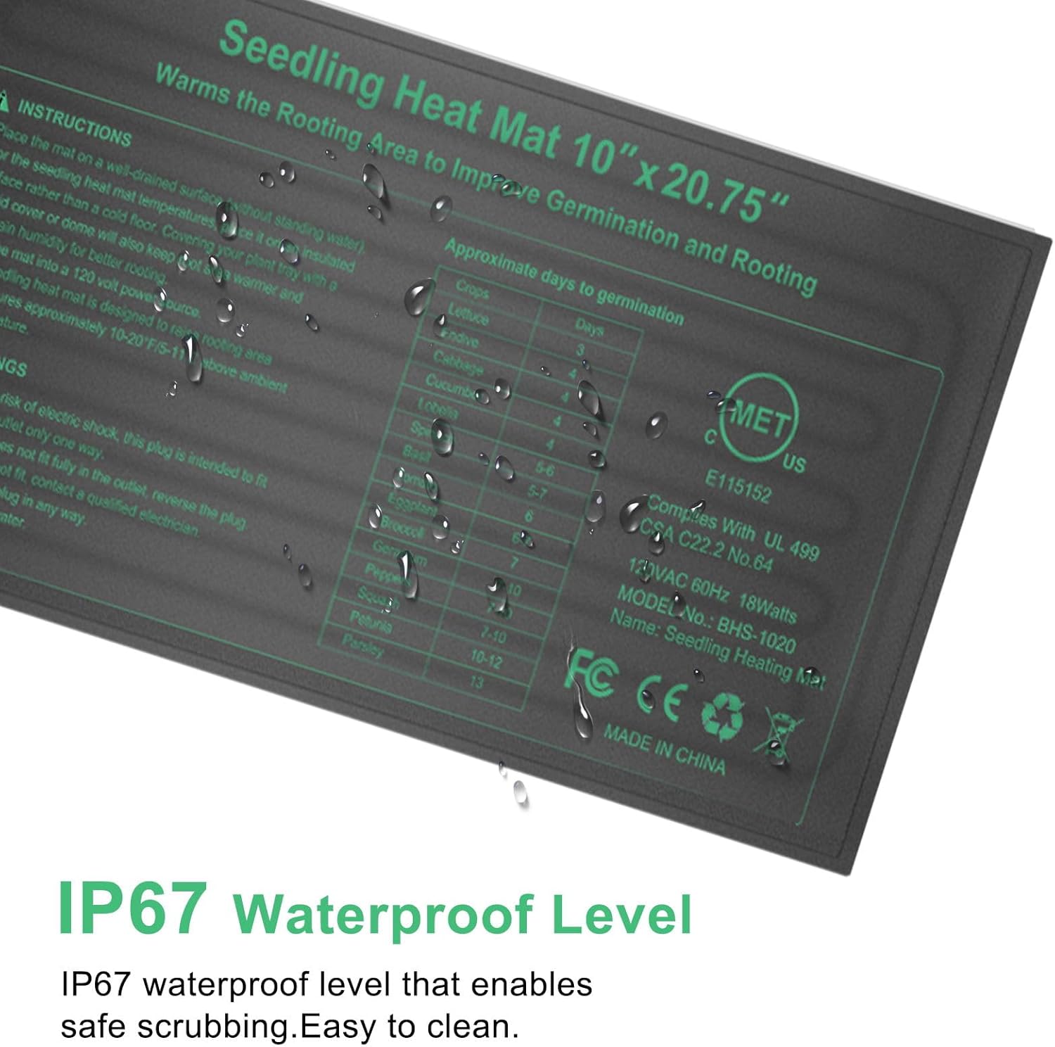 - ⭐【MET STANDARD&WATERPROOF MATERIAL】: Made of heavy duty PVC material that is durable and tear resistant.The heating mat is rated to IP67 waterproof against splashes, showers and sprays and also easy to clean by rinsing and wiping