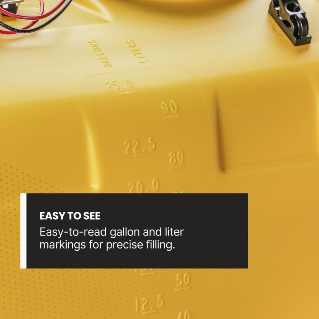 - SPRAY WITH CONFIDENCE: Handle herbicides, fertilizers, or pest control with ease. This 25-gallon sprayer offers precision application for both tight spaces and large areas