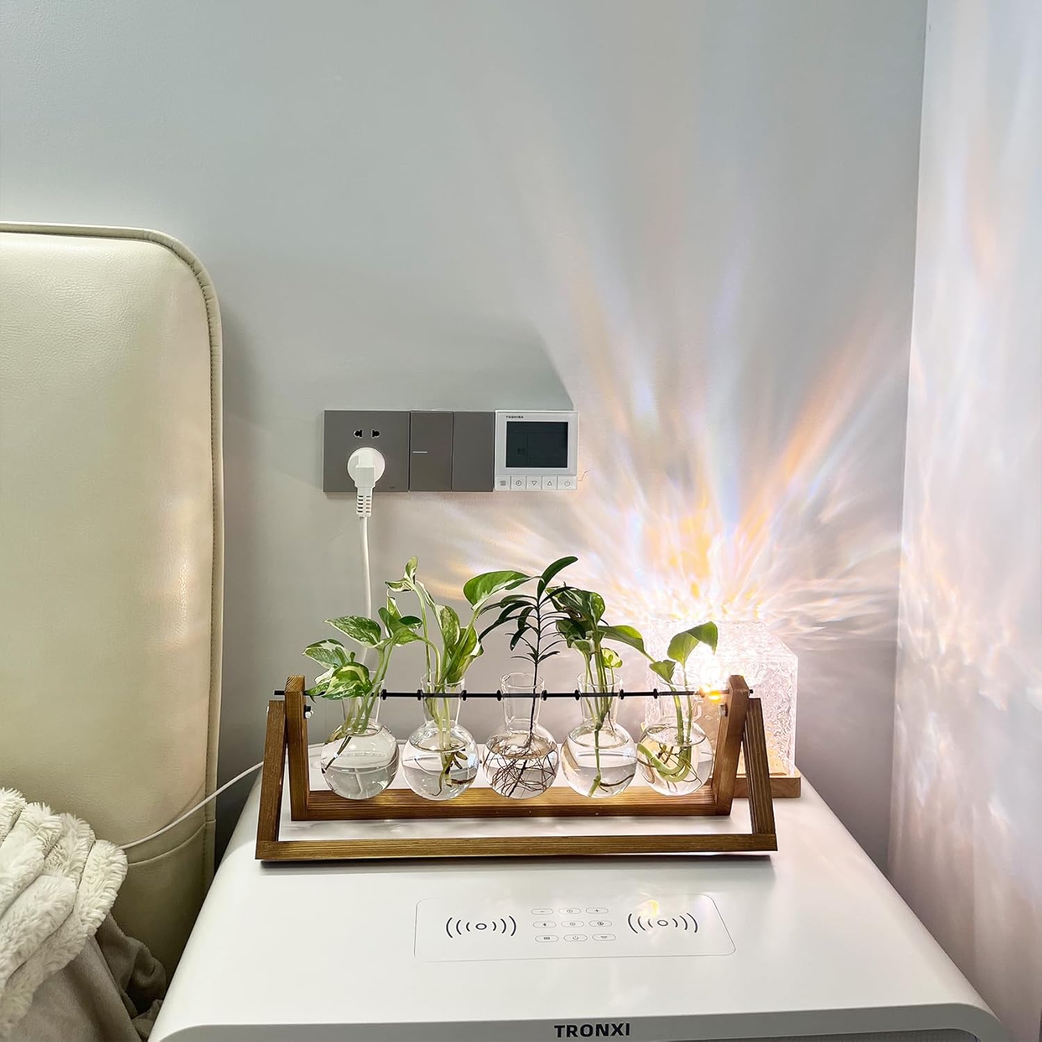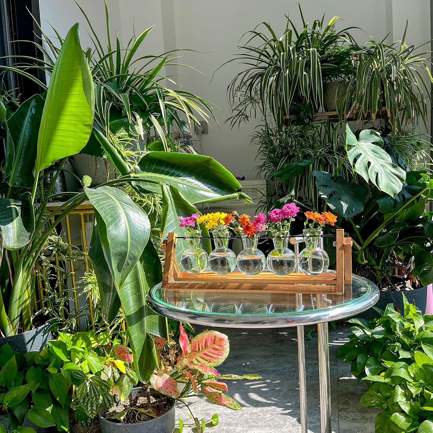 - [Fashionable Plant Propagation Stand] - Planter Terrarium with Retro Solid Wooden Stand is ideal for plant propagation and cuttings. Glass container with bulb vase makes it easy to observe the growth status of plants. Suitable for floral decoration, home office decoration and beautiful gifts.