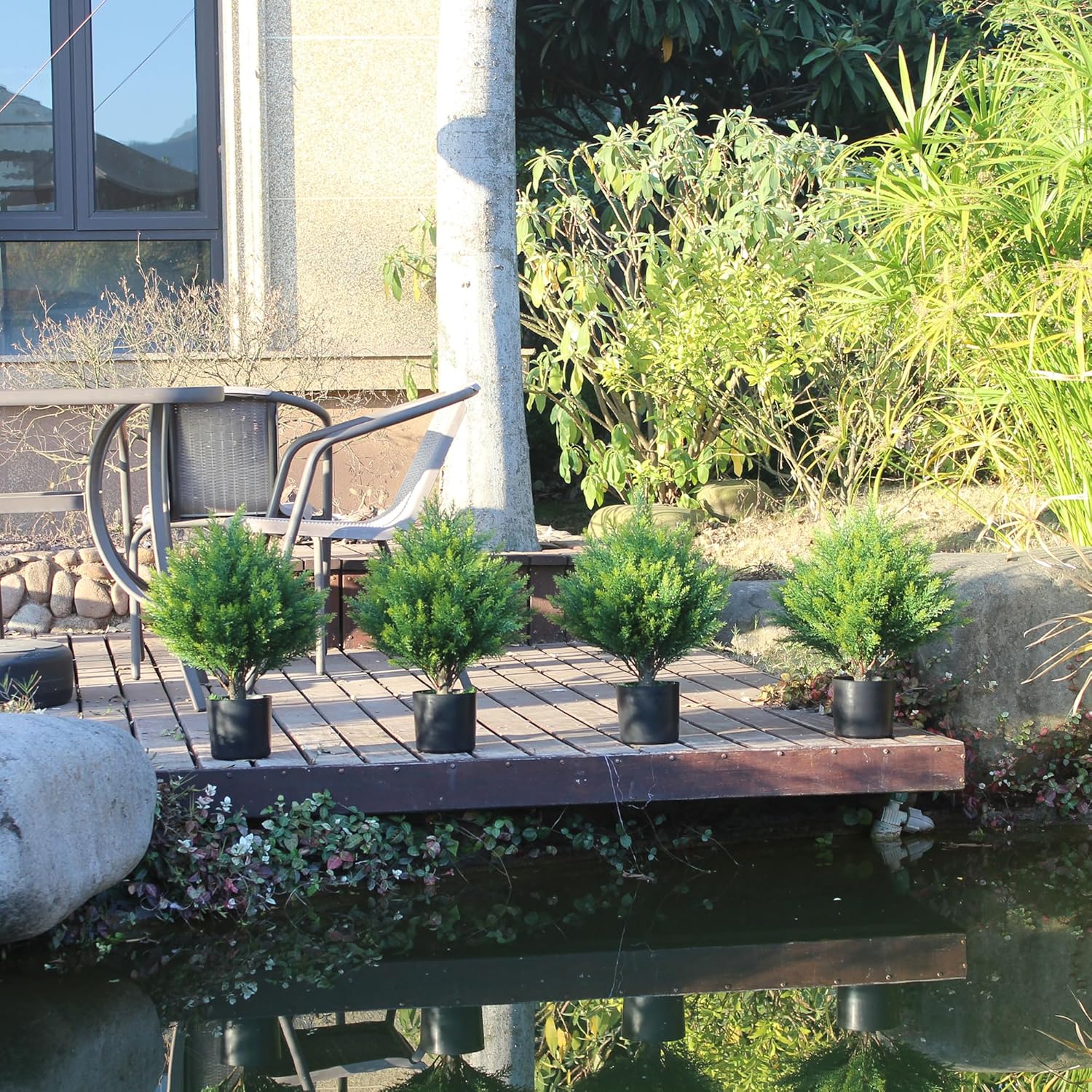 - 【Out of the Box, No Assembly Required】Our artificial cedar topiary tree do not need to be reassembled, just open the package and you can decorate your home. Tips: There may be some deformation of the leaves during transportation, need some re-shaping by hand. We suggest to placing it in bigger decorative planter to make the artificial tree be more perfect.