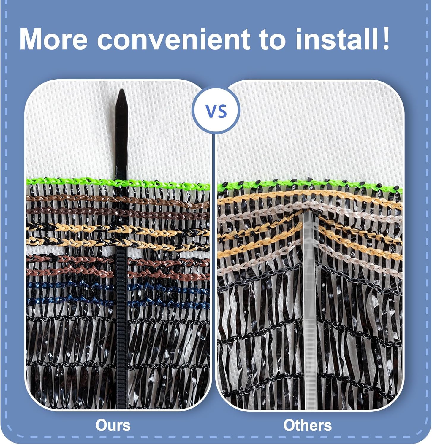 - ăEasy Set upăYou can fix the plant shade cloth on the fence with clips or ropes. It's easy to put up or remove without any tools. Hanging our sunblock shade cloth freely and easily without any worry about tearing and fraying