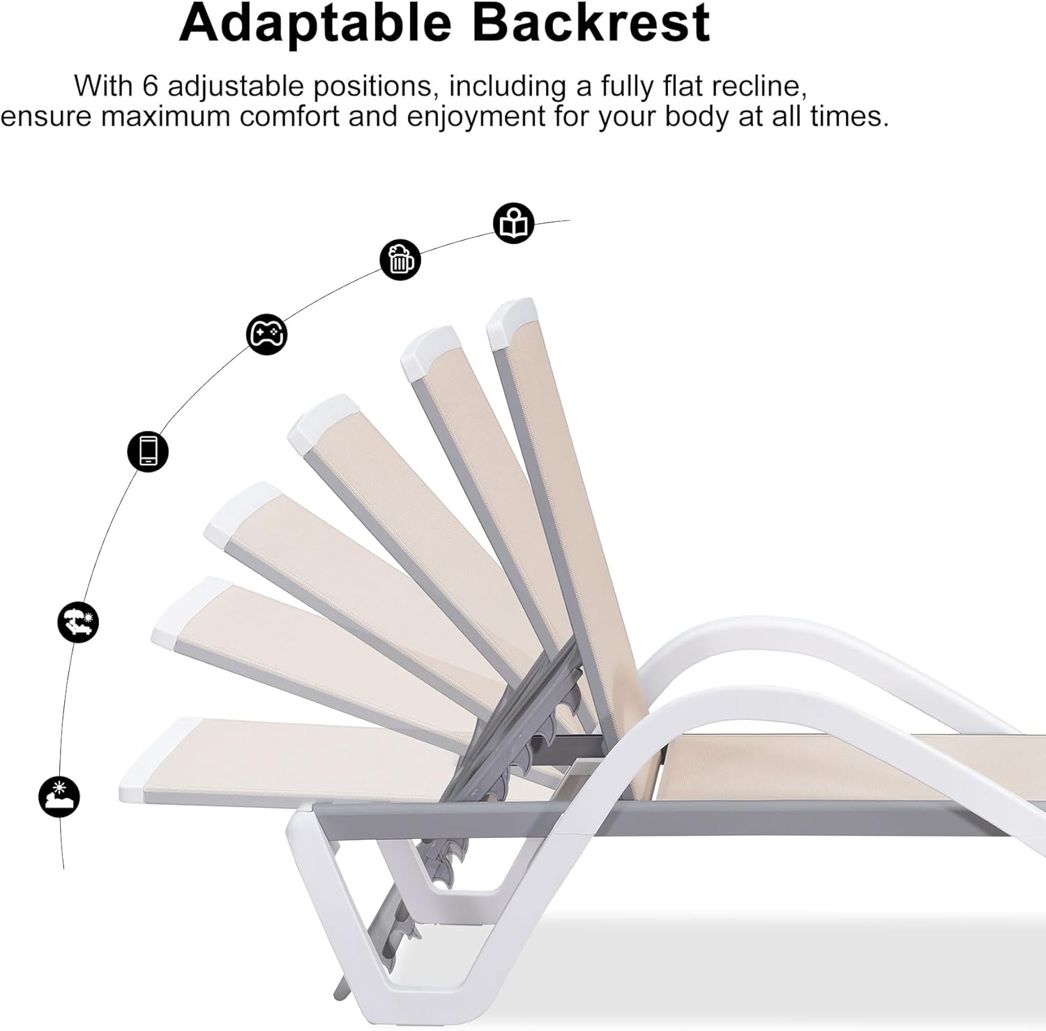 PURPLE LEAF Patio Chaise Lounge Chair Set Outside Aluminum Plastic Stackable Tanning Chairs with Armrests and Side Table for Pool Sunbathing Beach Deck Outdoor Lounger, Beige