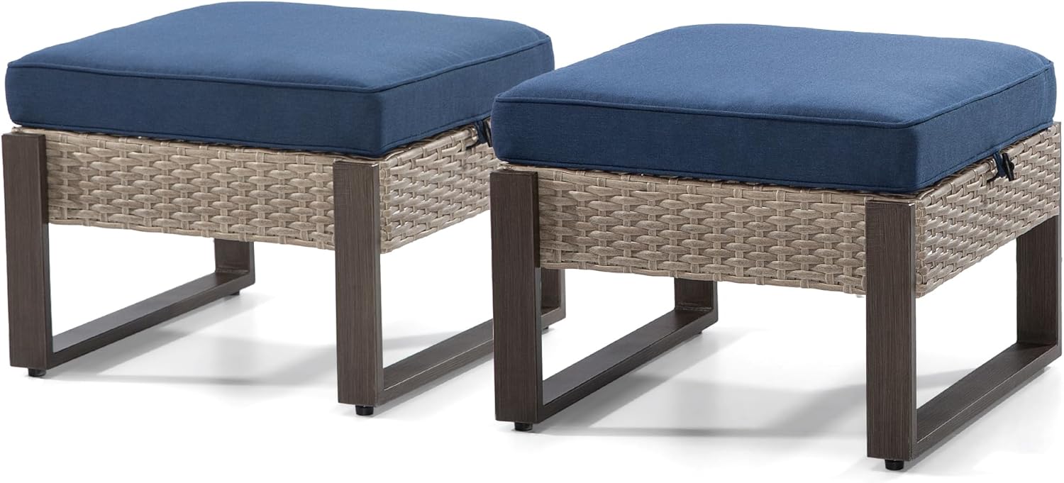 - PERFECT COMPLEMENT FOR PATIO FURNITURE: These ottomans are an ideal match for outdoor sofas, swivel chairs, or armchairs, offering a comfortable leg rest for your relaxation.