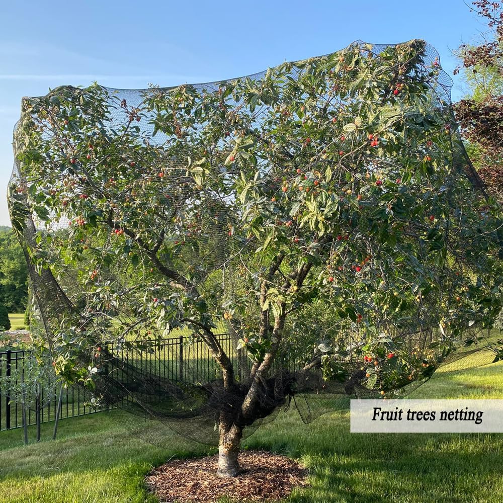 - Durable & Weather-Resistant: Our anti bird netting is made from HDPE material with a woven technique. The tightly woven mesh increases tensile strength, maintaining its durability even under intense sunlight. It is designed to withstand harsh weather conditions, including strong winds, storms, heavy rain, snow, and ice buildup. The 1 inch mesh effectively keeps out all types of birds, also helps reduce damage from heavy rain and hail to various vegetables, berry, strawberry plants.