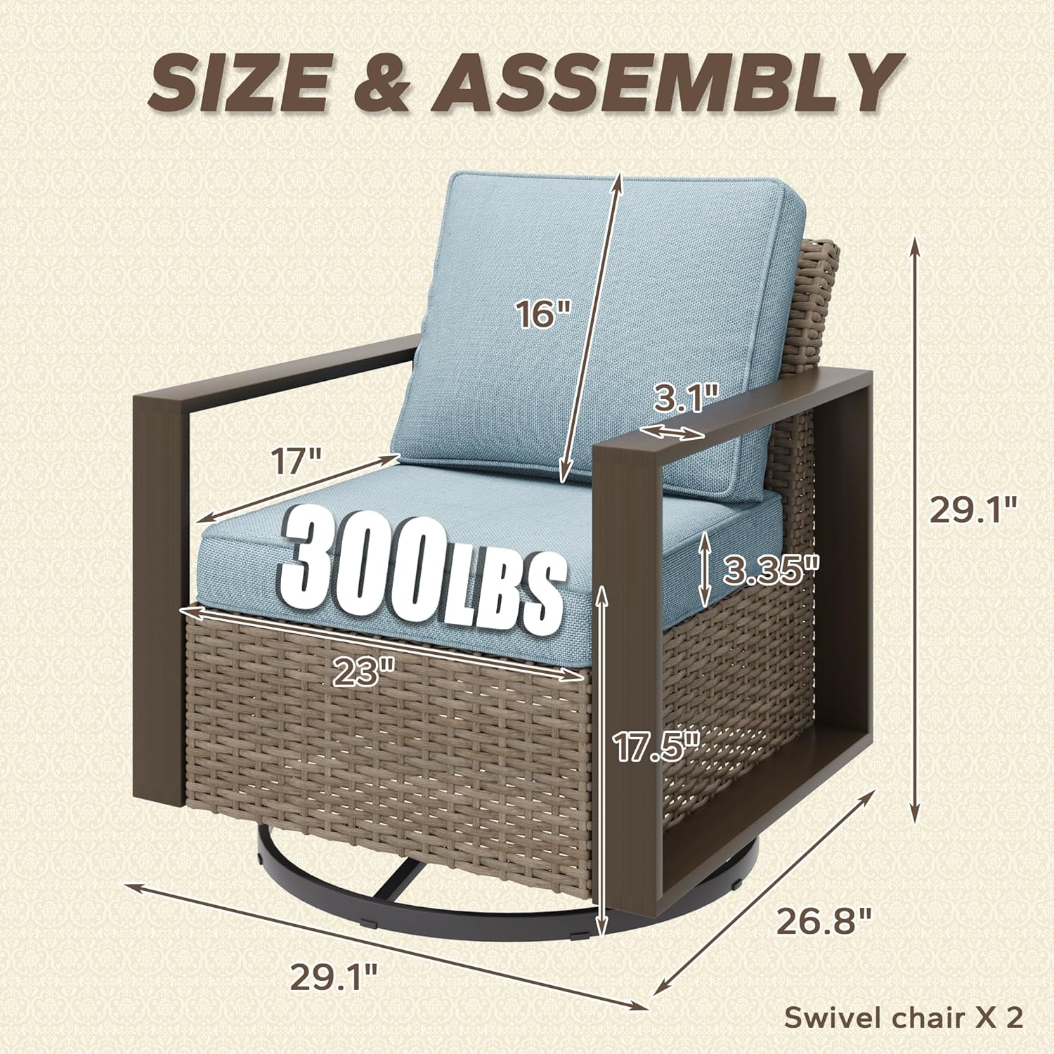 - DEEP SEATING & SPACIOUS ROOM: The swivel patio chair set features an extended seat panel, providing a snug feel while seated. There is ample space for an adult to sit and move around naturally.