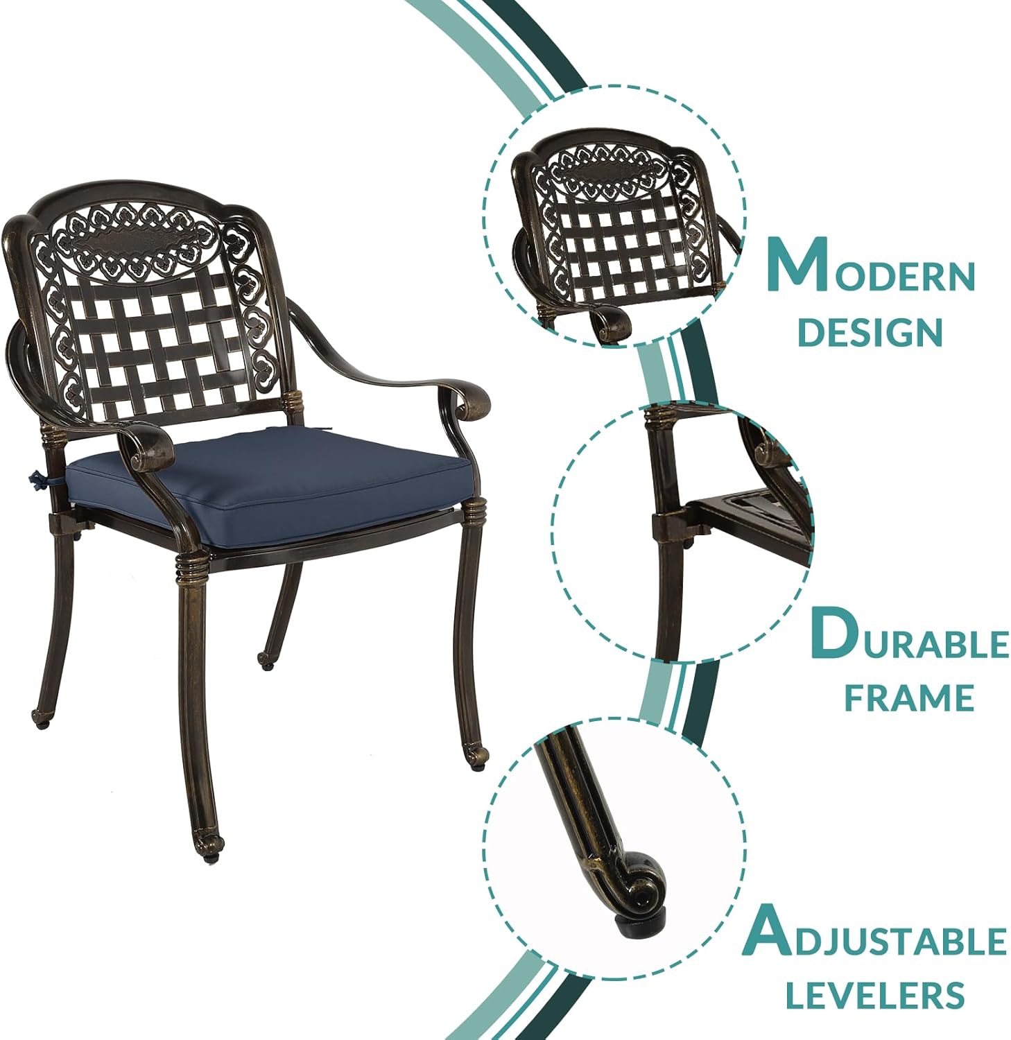 - 【Retro Pattern Design】 - Each chair features a contoured shape with elegant flora and lattice design, add beautiful finishing touch to any outdoor setting, patio or poolside. Designed with a contoured shape and curved armrests for exceptional comfort as you gather with friends and family