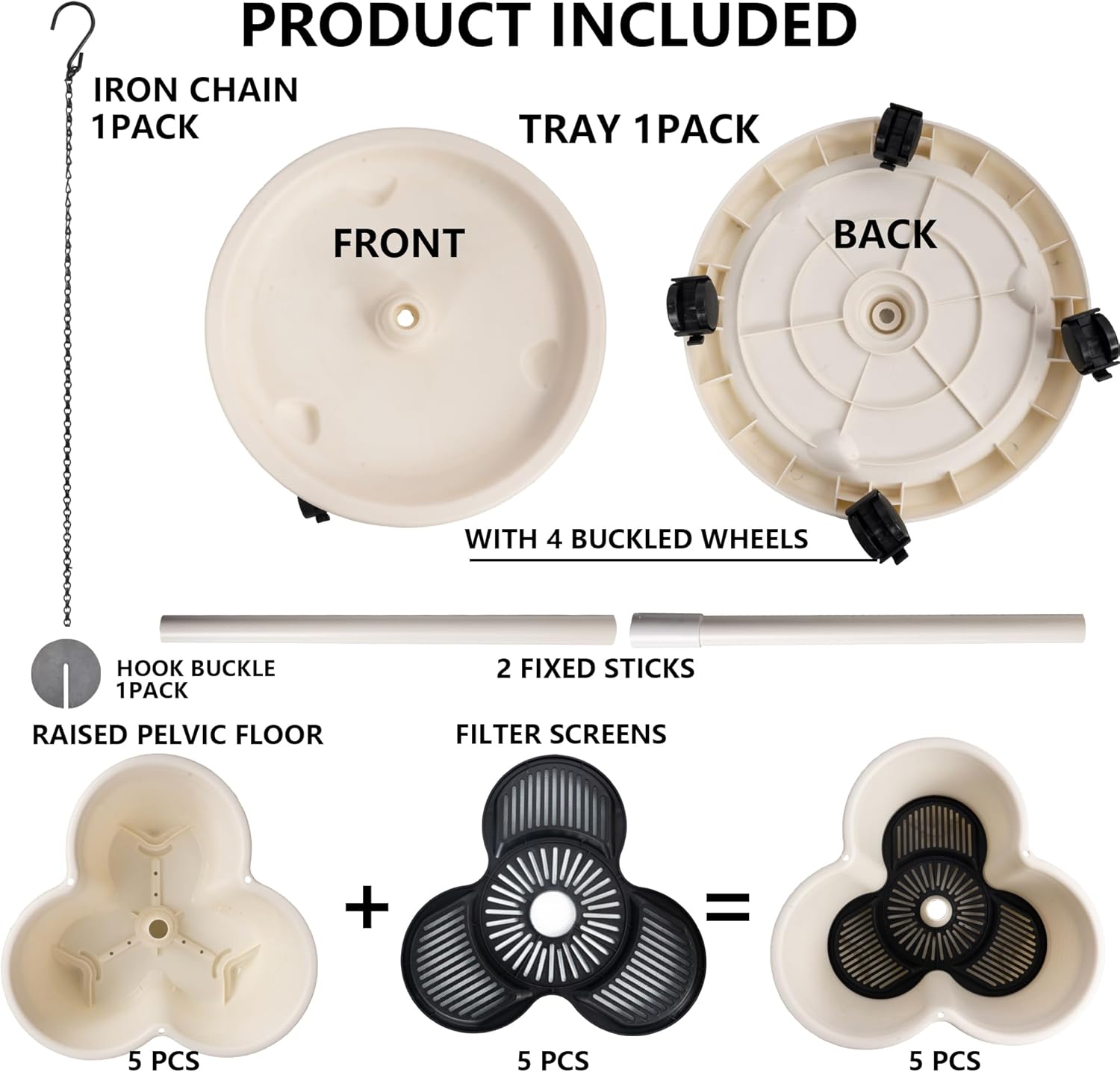 - Simplified Gardening: Each pod is 13 x 5.1 Inch (LXH), and the tray height is 3.54 Inch(H), filter tray is 12 Inch, and total height is 2.52 FT(H), iron chain is 37.5 inch.This planter allows for versatile stacking options: 2, 3, or even 4 tiers high. Additionally, it can be suspended using chains or positioned on a cylindrical pole.