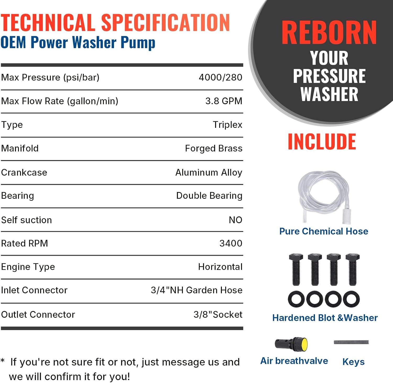 - [Excellent Durability] The YAMATIC horizontal triplex plunger pressure washer is made of high-strength materials, precision-machined, and rigorously tested to ensure excellent performance under long-term high-load operation, extend service life and reduce maintenance costs.
