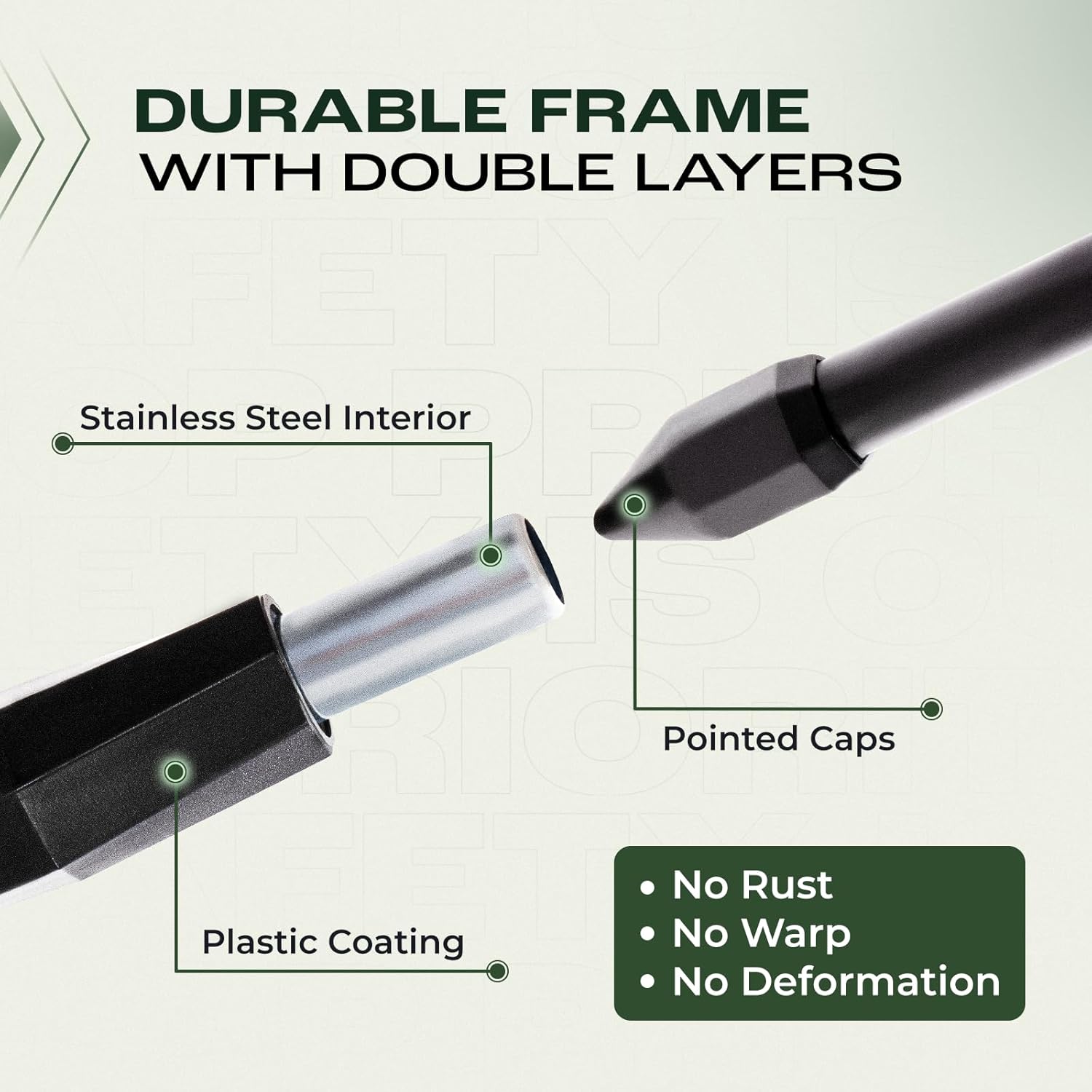 - Material : Nylon netting, Polypropylene coated steel tubing