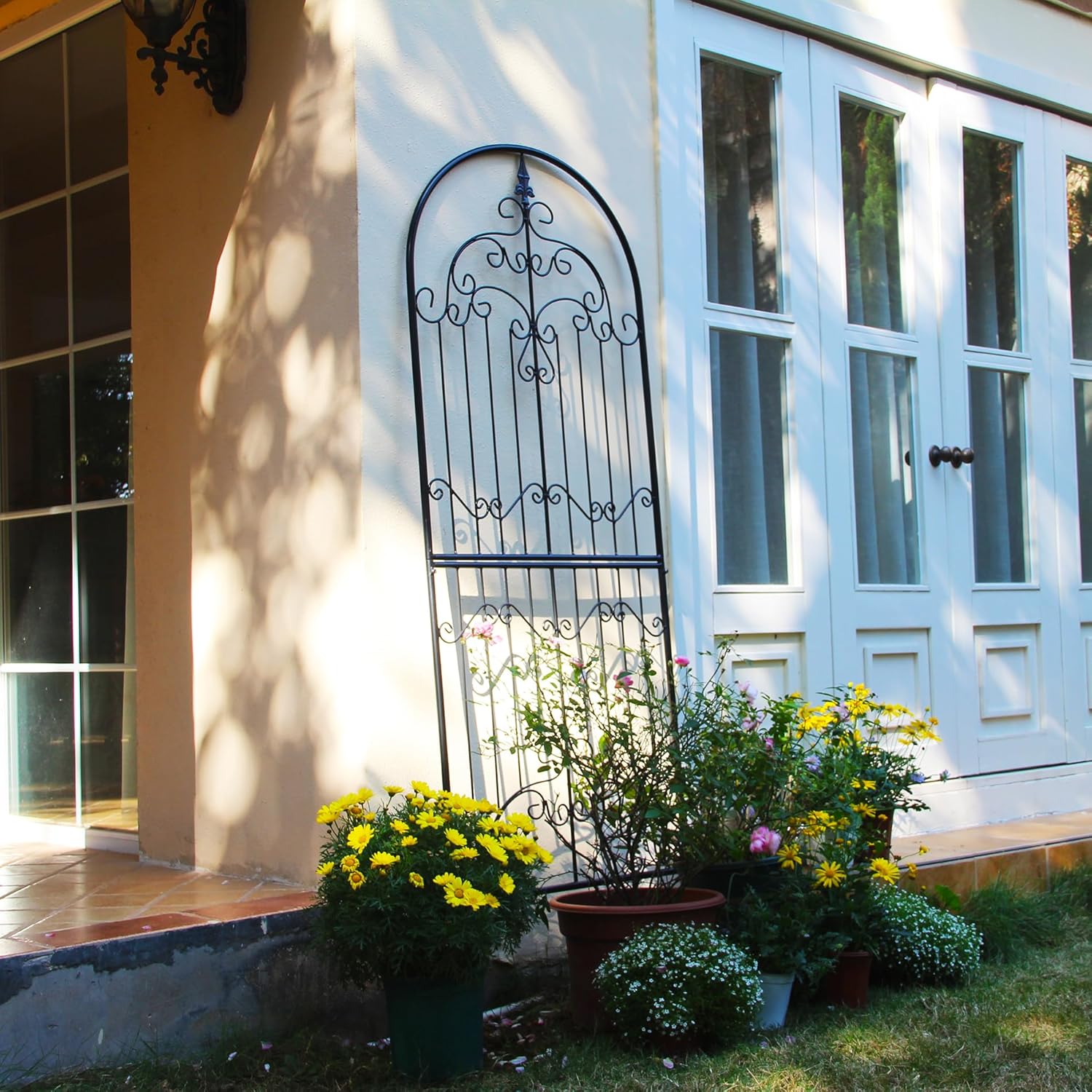 - Enduring and Weather-Resistant: Crafted from rustproof, high-quality iron with a sleek black powder-coated finish, this plant trellis offers sturdy support for a variety of climbing plants and vines. With dimensions of 70.8" H x 25.6" W and a net weight of 9.9 LB, each package includes a single garden trellis.