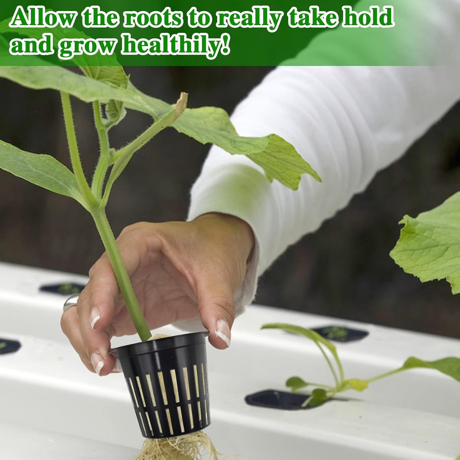 - How to Use: Please devide the rockwool into cubes as needs with a scissor before soaking. Then simply soak the cubes briefly (10 sec) in a nutrient solution to adjust its EC and pH value to the range required by your seeds. Then wait for the seeds to take root and germinate. The roots out of the holes in the netting cups and begin to absorb the nutrient solution below. then you're ready to start growing them soilless.