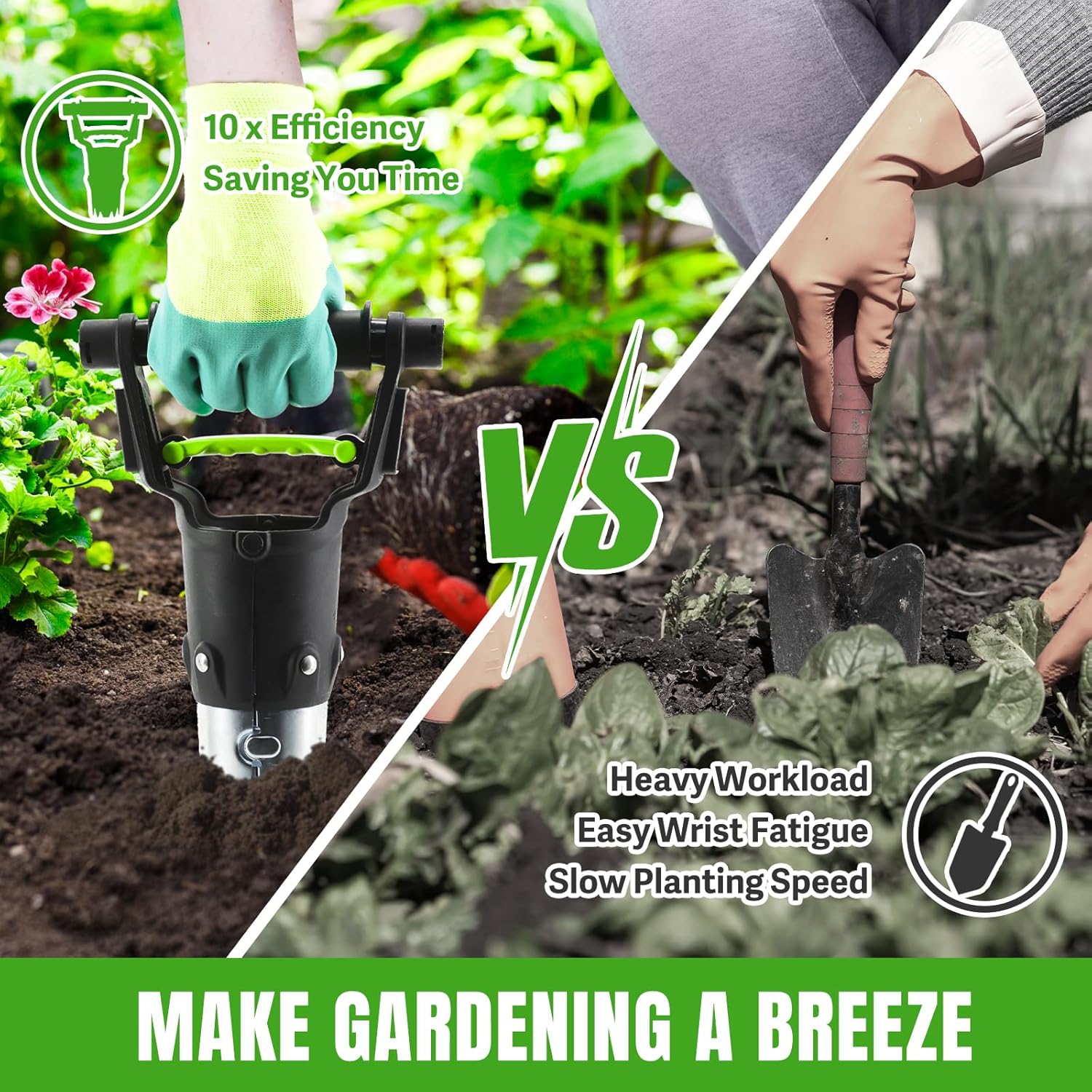 - INNOVATIVE PULL-UP HANDLE DESIGN: Exclusive design to free your thumbs! The ergonomically crafted handle ensures effortless use, allowing you to operate the Bulb Planter Tool for extended periods without experiencing fatigue.