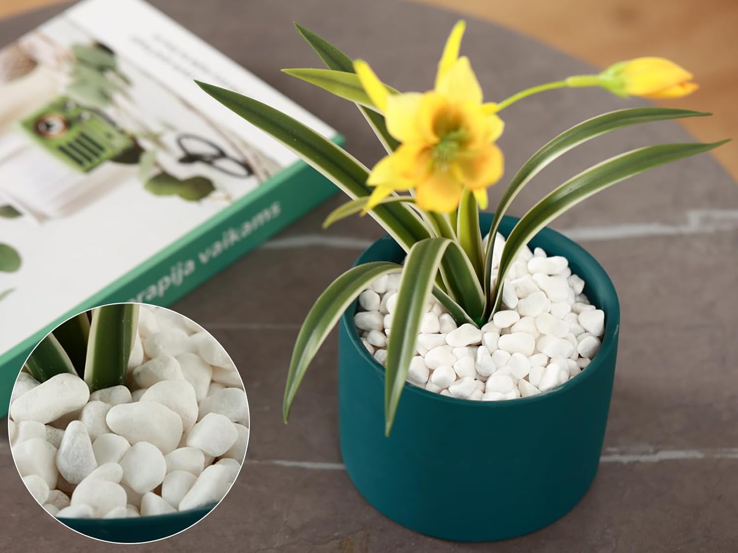 - Natural Pebbles for Plants: Unlike wood mulch, which will deteriorate, these 0.24” - 0.35” small white stones are more cost-effective. These snow-white river rocks are great decorative stones for your bamboo plants, succulent plants, and various indoor outdoor house plants.