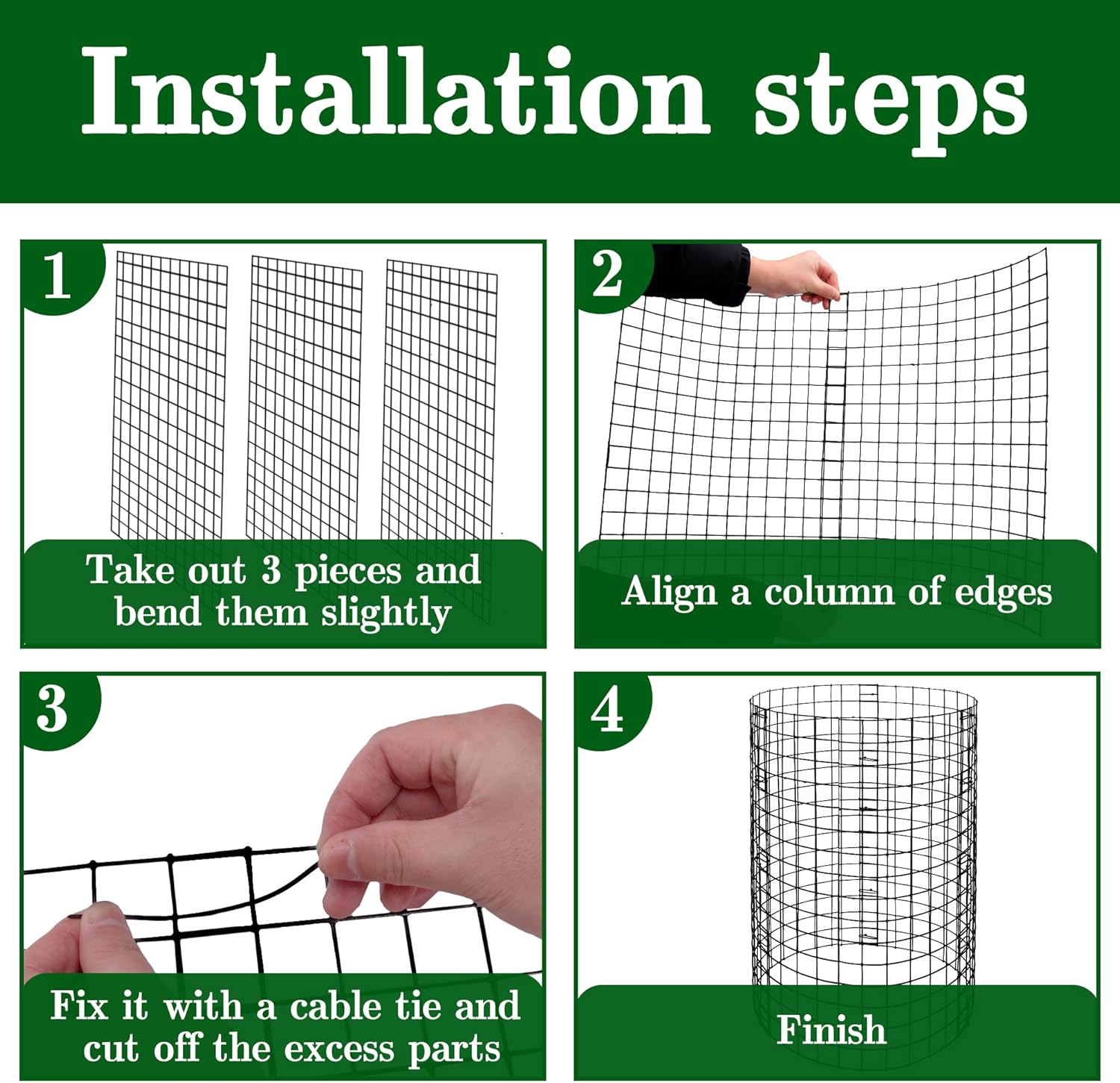 - Effortless Assemble: Put the 3 pieces of grids together to make a circle, or more grids together to make a protecting space for big plants according to your needs.Just fix it with cable ties, then insert the ground spikes to fix it in place.It also can easily be stored when not in use.