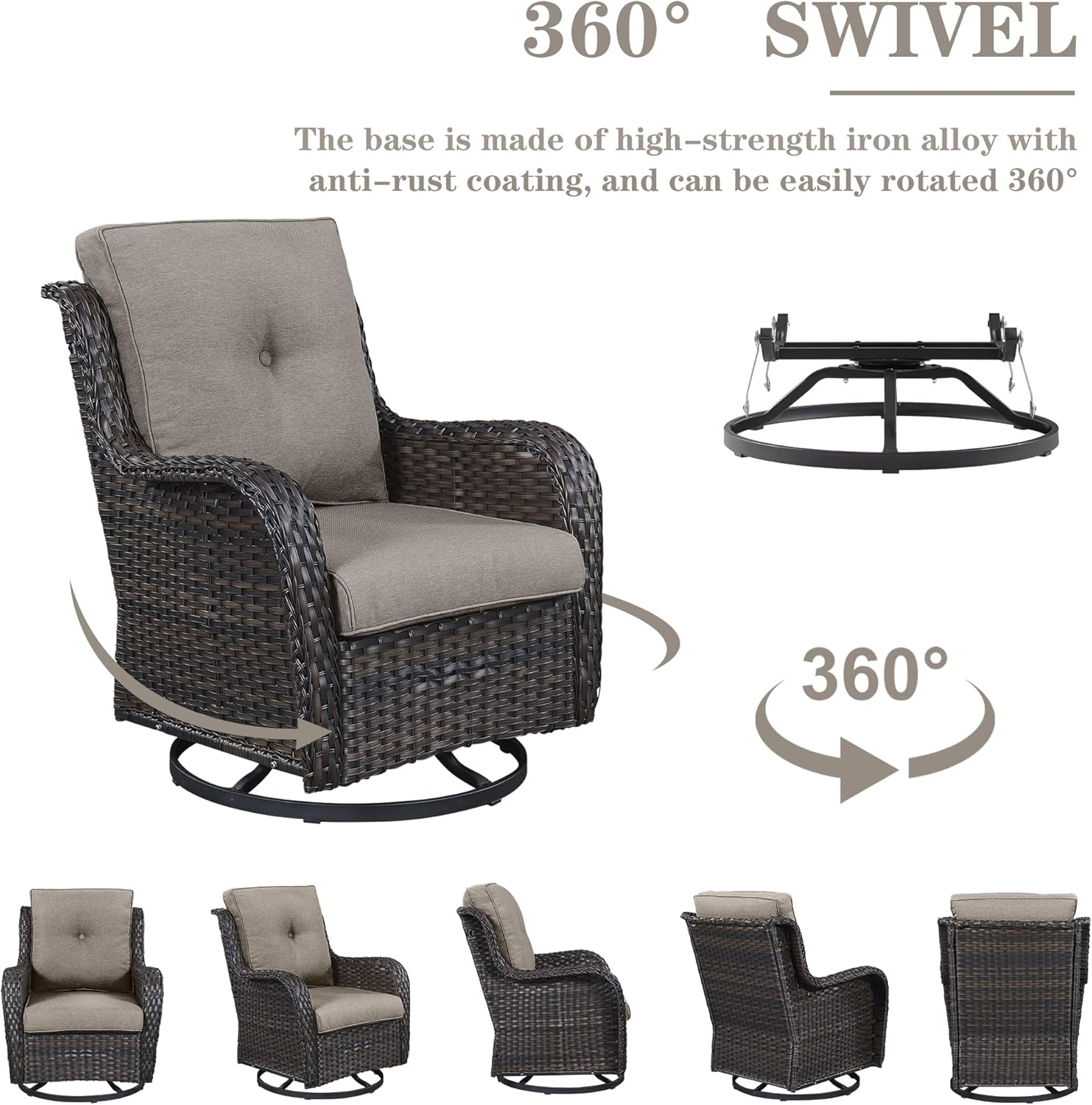 - 2.Serene Wicker Swivel Elegance: Soothe away stress in our unique wicker swivel rocker glider chairs that combine the relaxing benefits of glider with the soothing motion of 360 swivel. Designed for pure relaxation, these outdoor swivel rocker chairs elevate your outdoor comfort, adding a touch of luxury to your space.