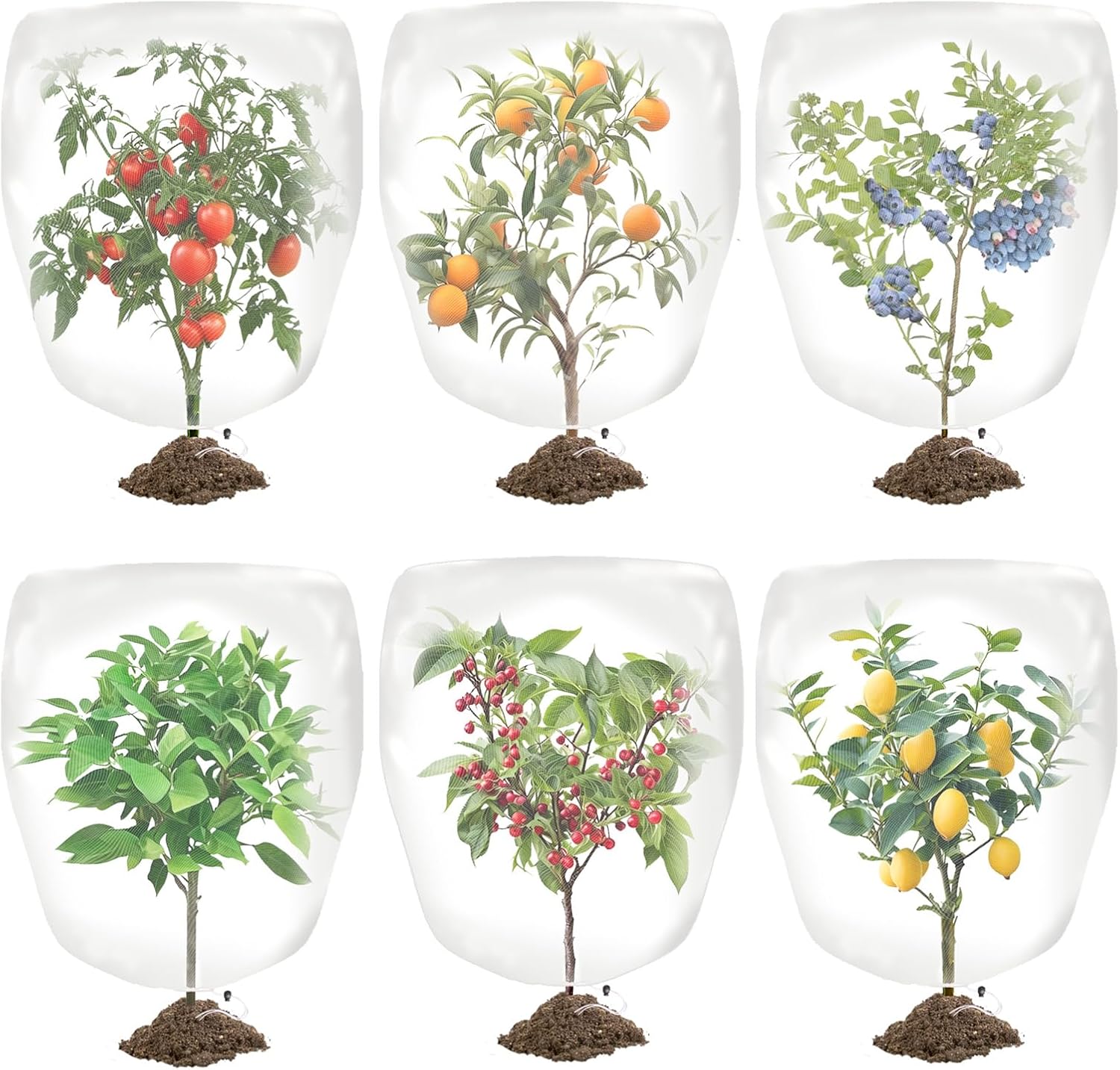 Garden Plant Covers Bags with Drawstring, 6 Pack, 3.3x2.6Ft Mesh Plant Covers, Insect Bird Barrier Mesh, for Trees & Shrubs &Garden Plant Protection