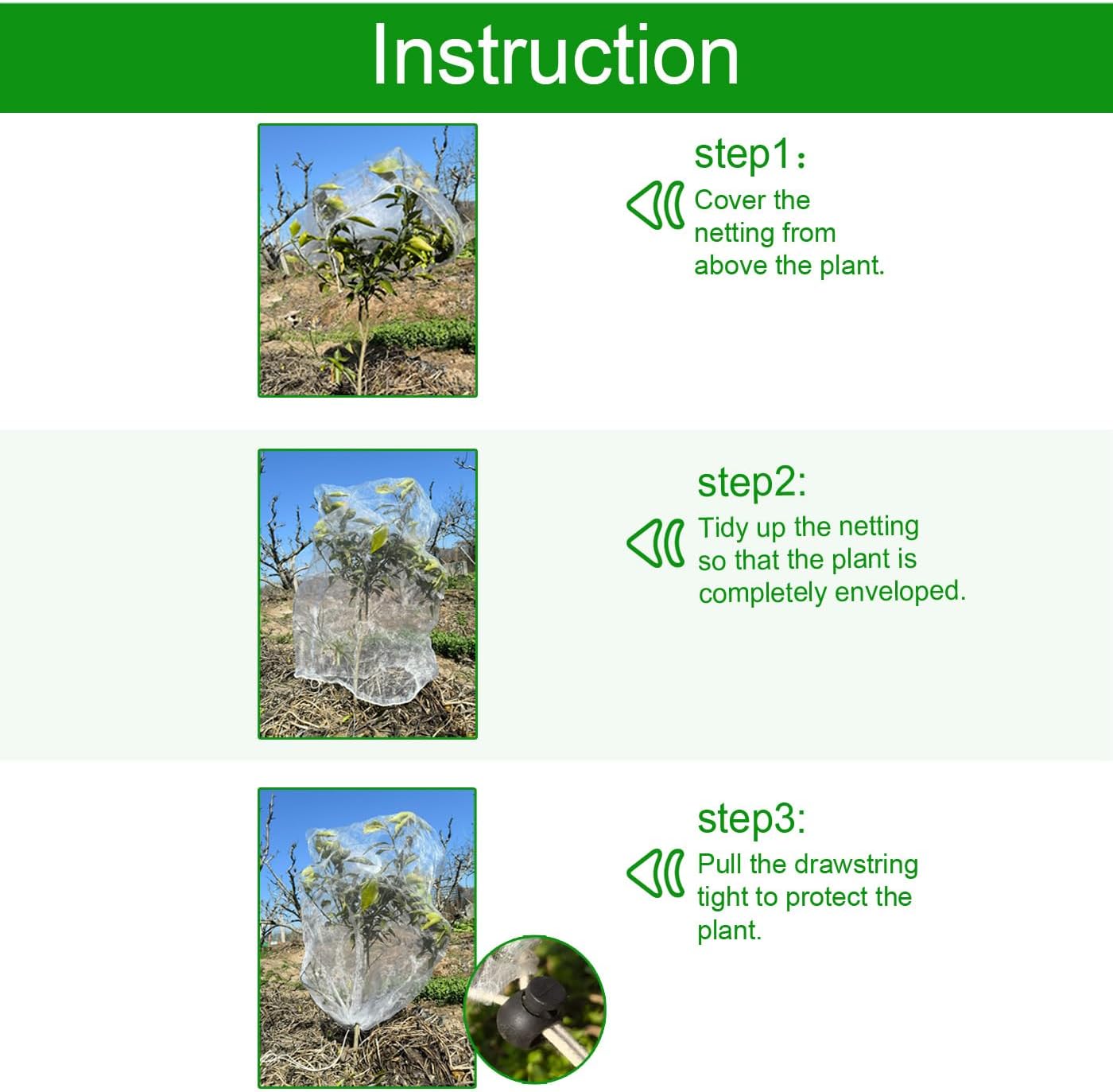 - User-friendly design: Easy to disassemble and clean, this cover features a drawstring design for ease of use. Simply place the pest barrier mesh over the plant and tighten the rope at the bottom. Lightweight bags store easily when not in use.