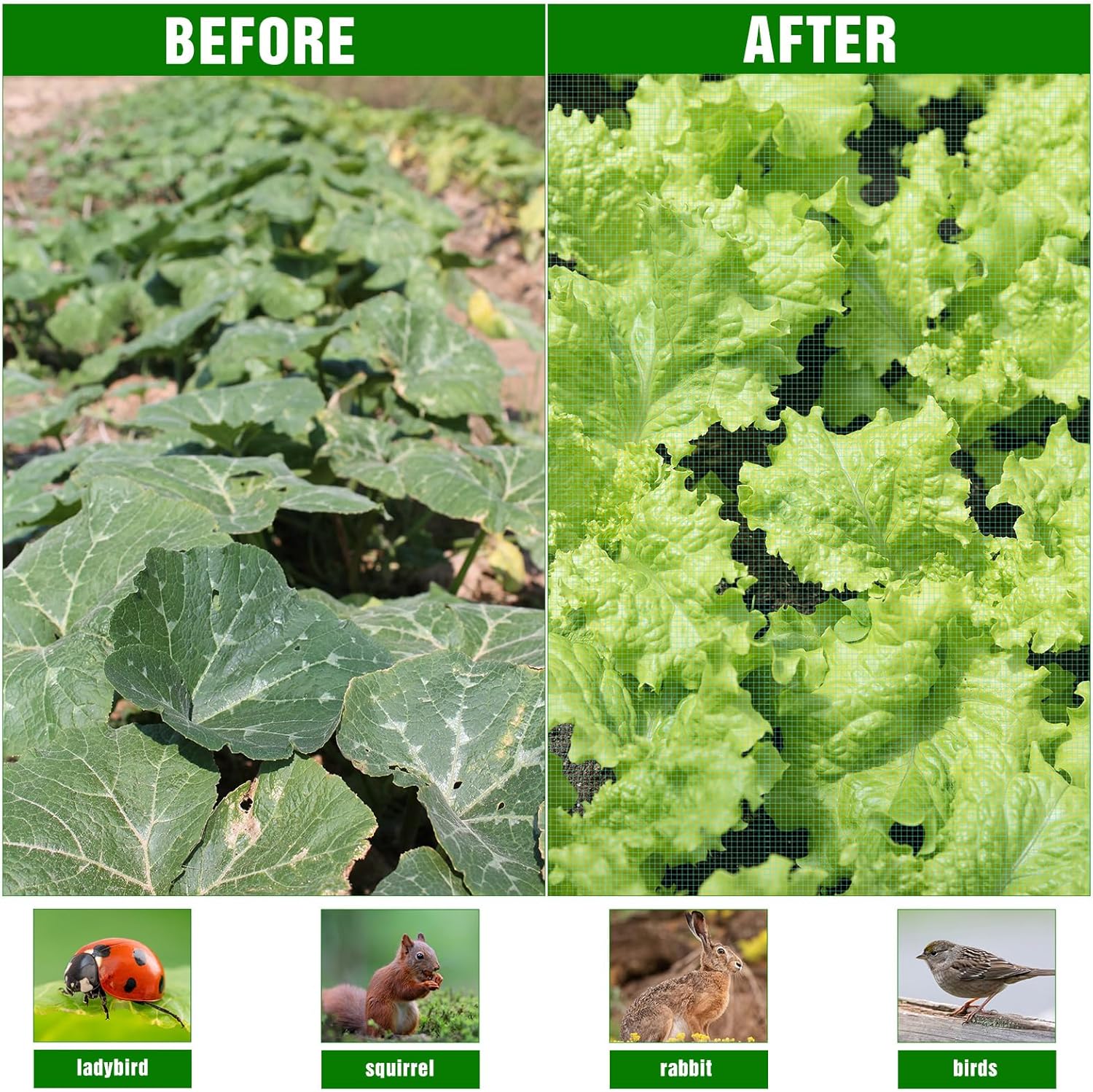 - Comprehensive Protection: The fine mesh design of this garden netting pest barrier offers strong protection against birds, insects, and small animals, while still allowing sunlight, air, and water to pass through; No need to remove the garden net for watering or fertilizing, just apply treatments directly through the mesh for hassle-free plant care