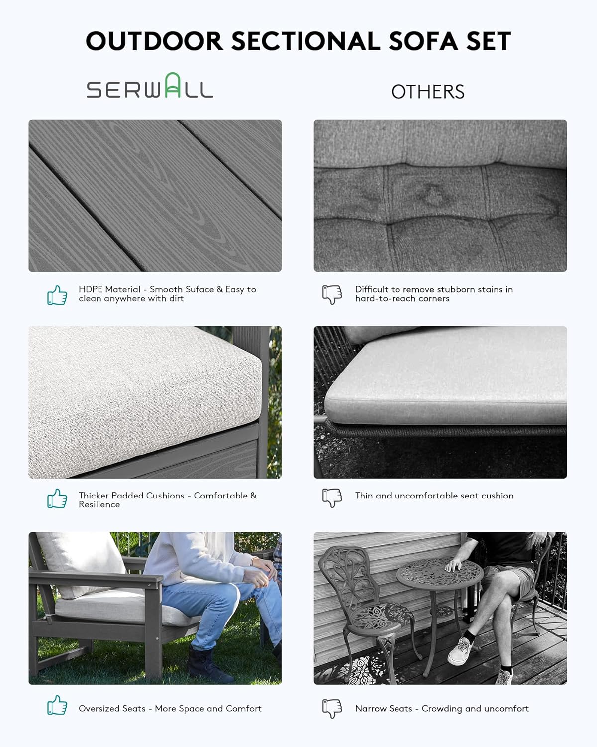 - 1000 Days Trial: Your satisfaction is our top priority. We are committed to providing excellent customer service and support. Each of our 3-piece patio sofa sets comes with SERWALL's assurance of quality and customer satisfaction. If you have any questions or concerns, our dedicated customer service team is ready to assist you.