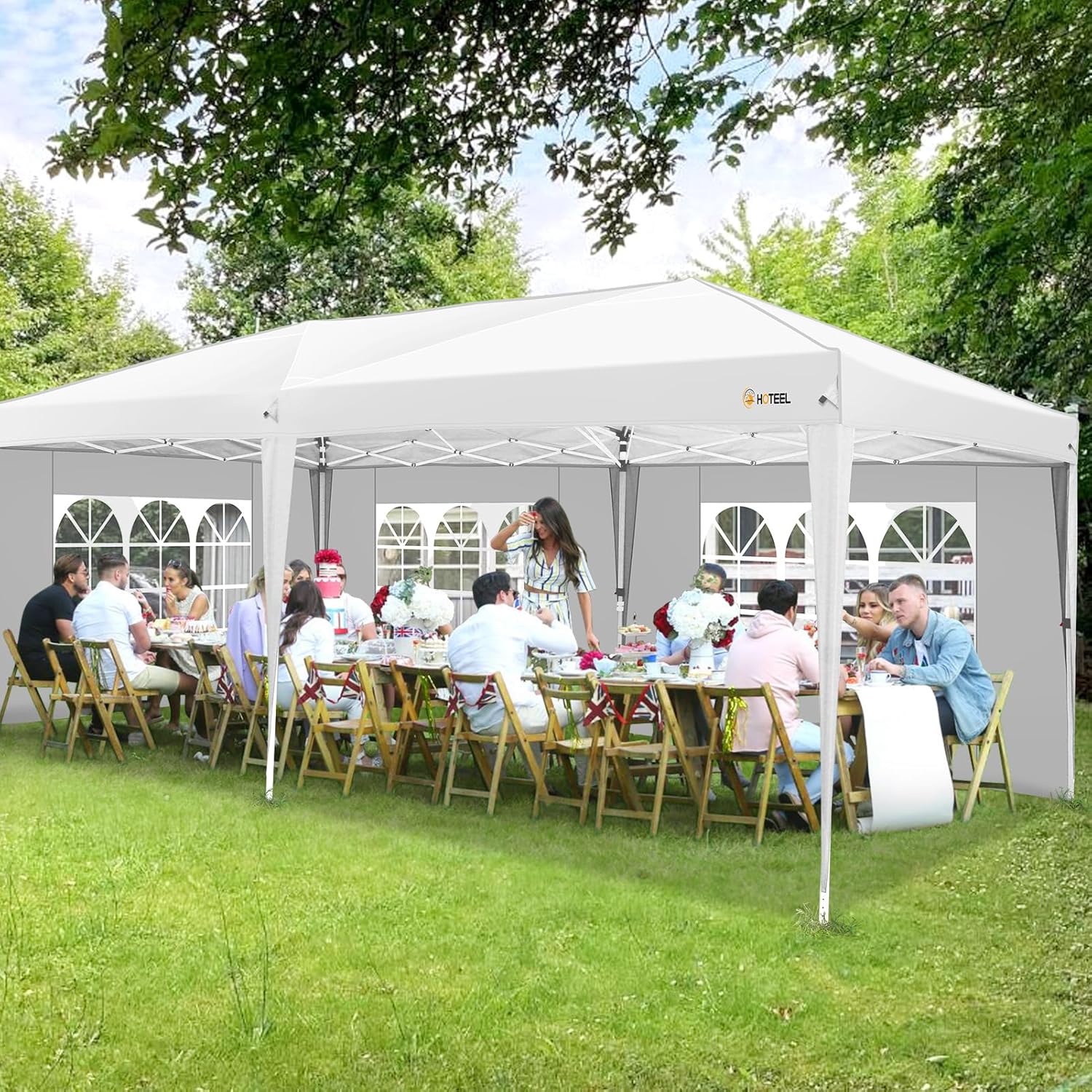 HOTEEL 10x20 Pop up Canopy with Sidewalls, One Push Outdoor Tents for Parties Waterproof Canopy Tent with Reinforce Rod, Easy Setup Event Tent with Sandbag for Backyard, Camping, Wedding, White