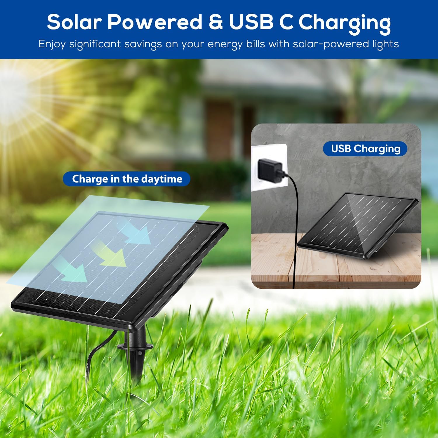 - 【Automatic On/Off & Adjustable Length】Equipped with Light Sensors, outdoor solar powered spot lights for yard garden automatically turn on at Dusk and off at Dawn. No need for manual operation, providing convenience and peace of mind. Providing an optional 13FT (2x6.5ft) Extension Cable (Sold Separately, ASIN: B0D174SZZ3 ).