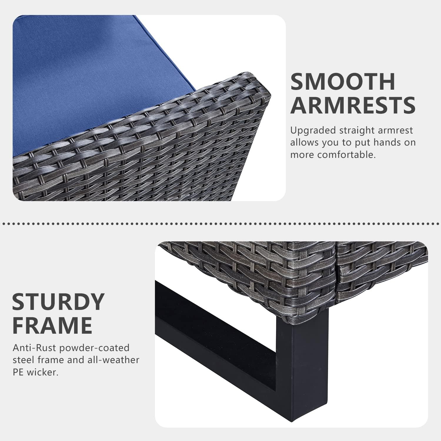 - 【Comfortable 4inch Thick Cushions】This outdoor furniture features deep and wide seats with 4-inch thick sponge-padded cushions,Offers good resilience, not easy to deform or slide, also protect your lumbar and offer a comfortable sitting experience.Water-repellent polyester cover with zipper,Easy to clean and keep.