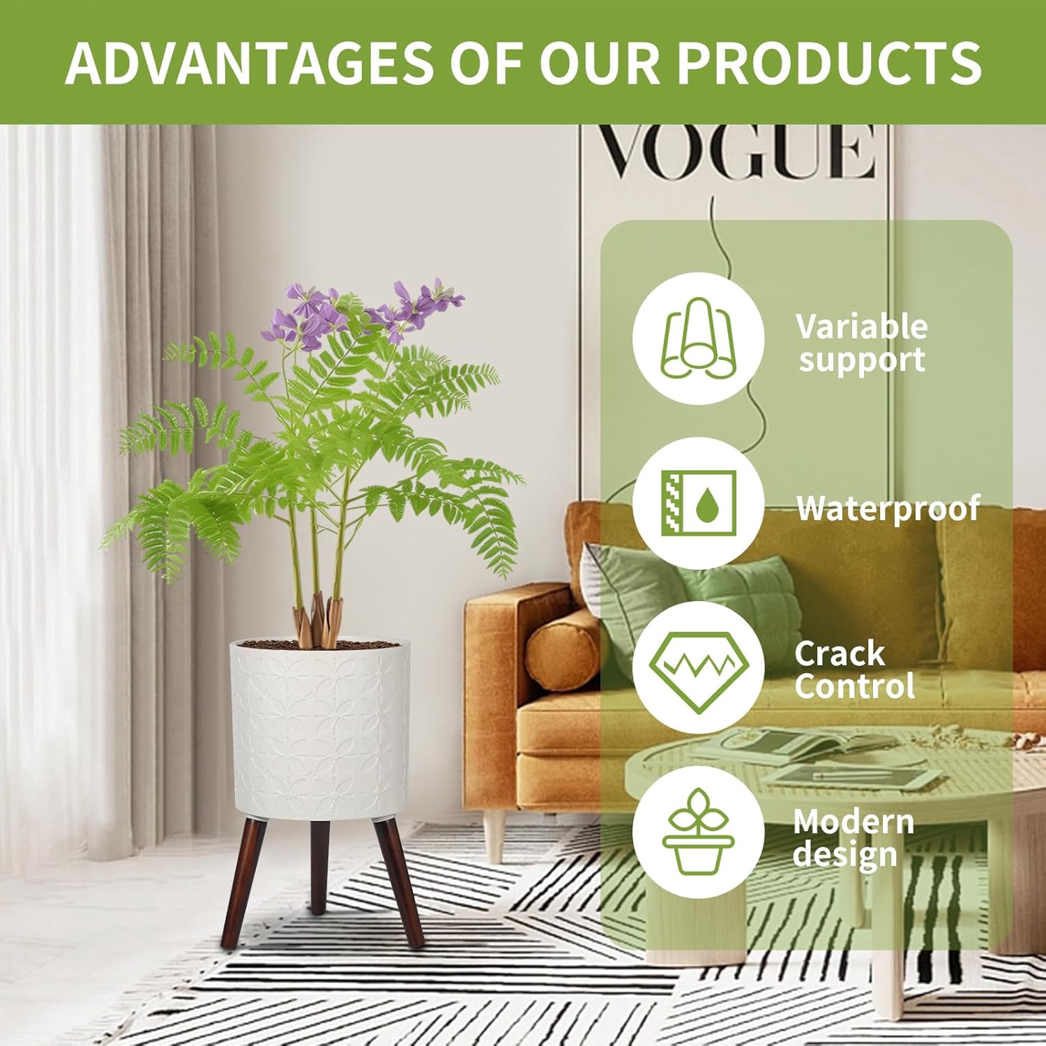 - lndoor decorative flower pot: Elegant modern mid-century design flower pot, can be placed in the bedroom, living room, balcony, kitchen and other places, adding beauty to home decoration,Let every guest appreciate the beauty of plants.
