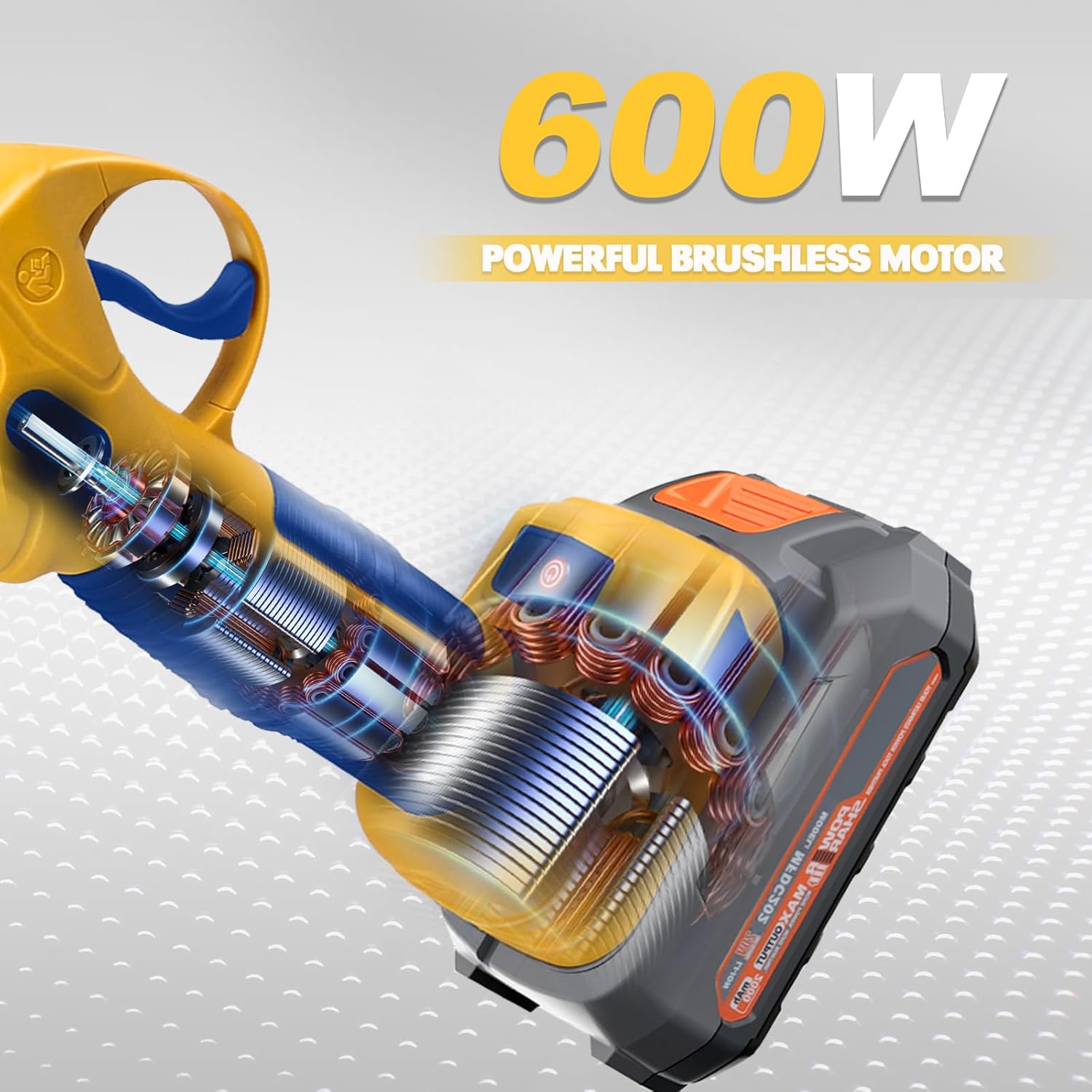 - Ergonomic Design: Cordless and compact size makes the tree pruner add no extra burden when take around; Weighs only 1.54lbs (without battery), it is lightweight to grab easily, causes less stress, and reduces hand fatigue, especially suitable for the elderly, women etc