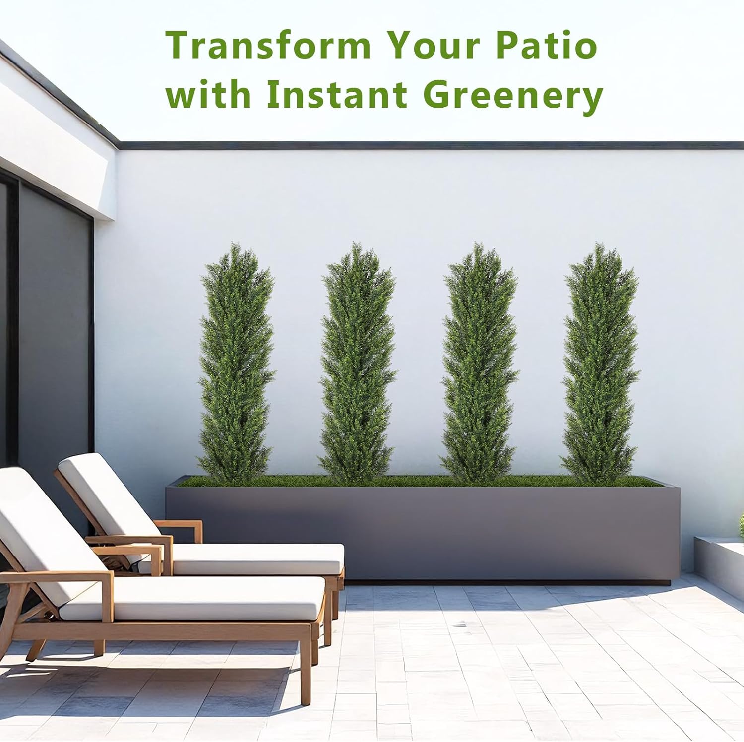 - 【Tall & Realistic Look – 6ft Natural Greenery】Standing 6 feet tall from the bottom of the pot to the tip of the tallest leaf, this artificial cedar tree features dense, lifelike greenery that mimics a real evergreen shape. Please note: The tree is shipped compressed. To reach its full height and natural look, gently fluff the branches upward by hand after assembly