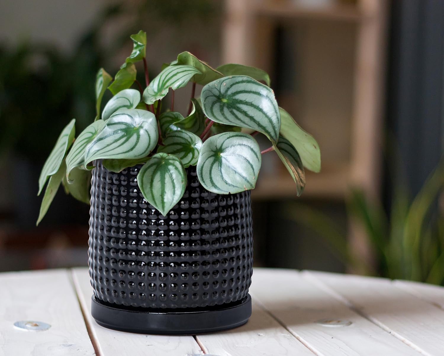 D'vine Dev 6 Inch Ceramic Beaded Stoneware Planter Pot - Flower Pot with Drainage Holes and Saucers for Indoor Succulent Plants or Flowers, Glossy Black, 27-C-X-2