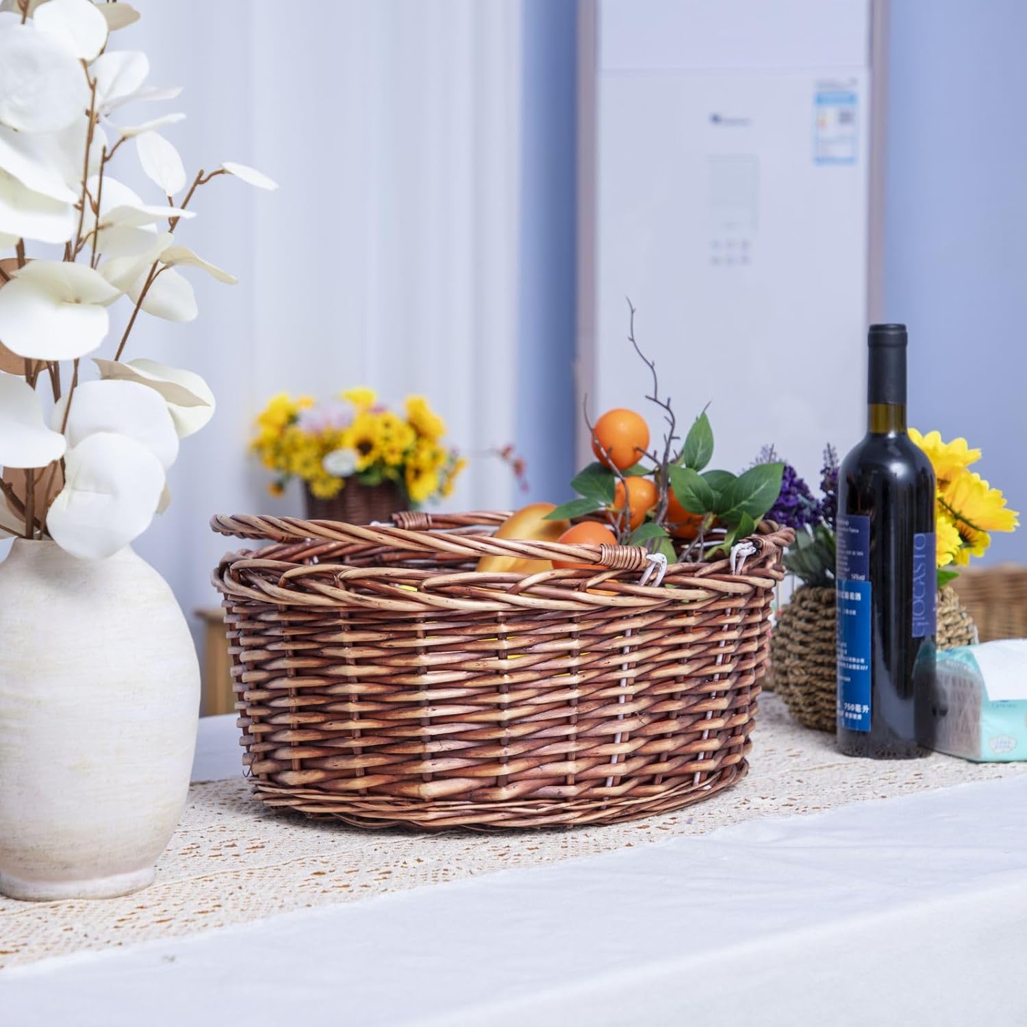 - [Perfect for Gifting] This wicker basket also could be a empty gift basket fill it with gourmet treats, seasonal goodies, or thoughtful presents to create a memorable and cherished gift. It's elegant appearance and multipurpose use will be appreciated by anyone who receives it.