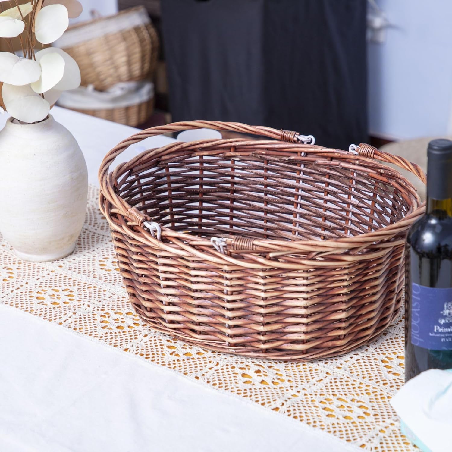 - [Versatile Picnic Basket] This large wicker basket for storage is designed for multi-purpose. The basket suitable for picnic, organizing garden harvest, or preparing for Easter festivities, this large basket is perfect companion. It's spacious interior allows to pack ample food, drinks, and essentials for a delightful outdoor experience.