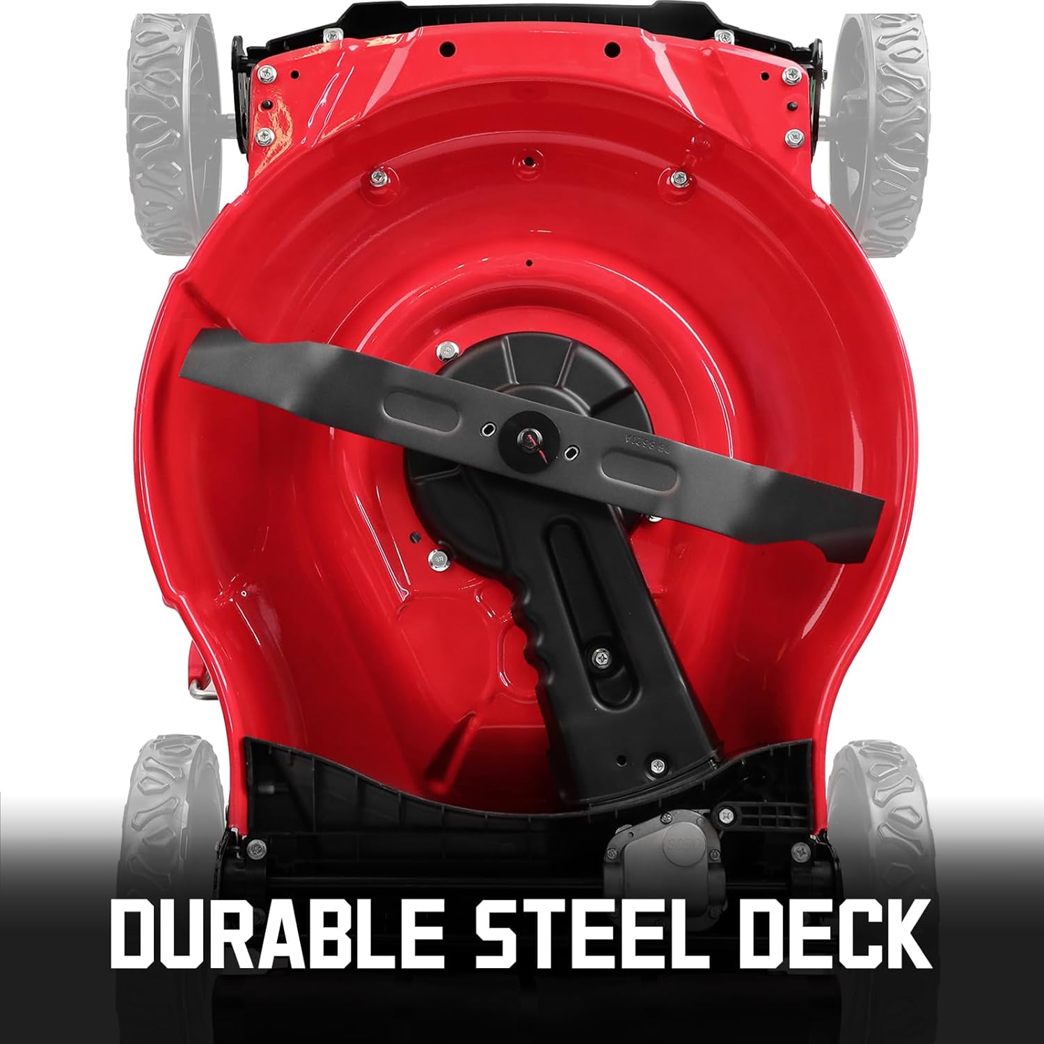 - 21-Inch Blade: The heavy-duty blade with 21" cutting path that allows you to cut a wide area of lawn with each pass and delivering better cutting effect.