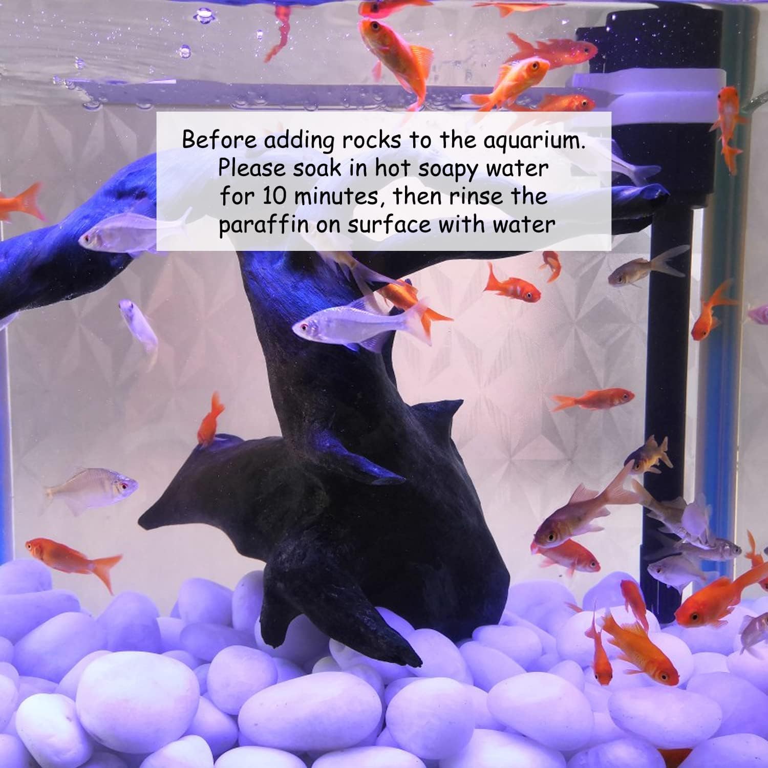 - 【Note】White rocks are not pure white, some of their surfaces are yellow or gray. Pebbles are made solely from natural rocks and pure paraffin, we do not recommend placing it in a fish tank, if you need to put it in a fish tank, please wash the surface with hot soapy water or detergent, then wash it with clean water. If you have any questions, you can contact us at any time, and we will do our best to solve your problems
