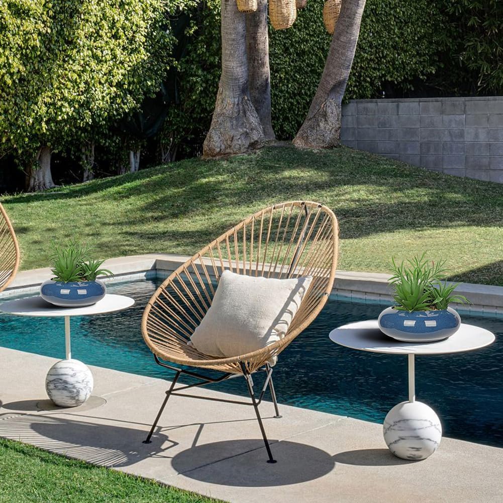 - 【LARGE SIZE SUCCULENTS】Artificial succulent blue pot size approx: 7.8" wide x 3.1" tall, 1 pcs fake succulent ⭕❗Please read the measurement more attentively. Lifelike succulents artificial potted in blue ceramic pots, covered with stones, whether indoor or outdoor fake succulent plant looks so real and cute.