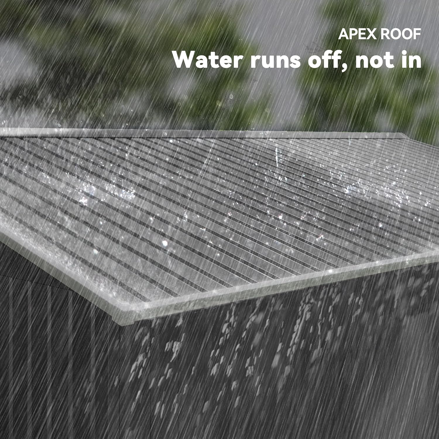 - Sloped Roof Shed: A sloped and striped roof keeps our backyard garden shed from holding on to too much weight during rainfall, preventing possible damage and keeping it intact during all seasons.