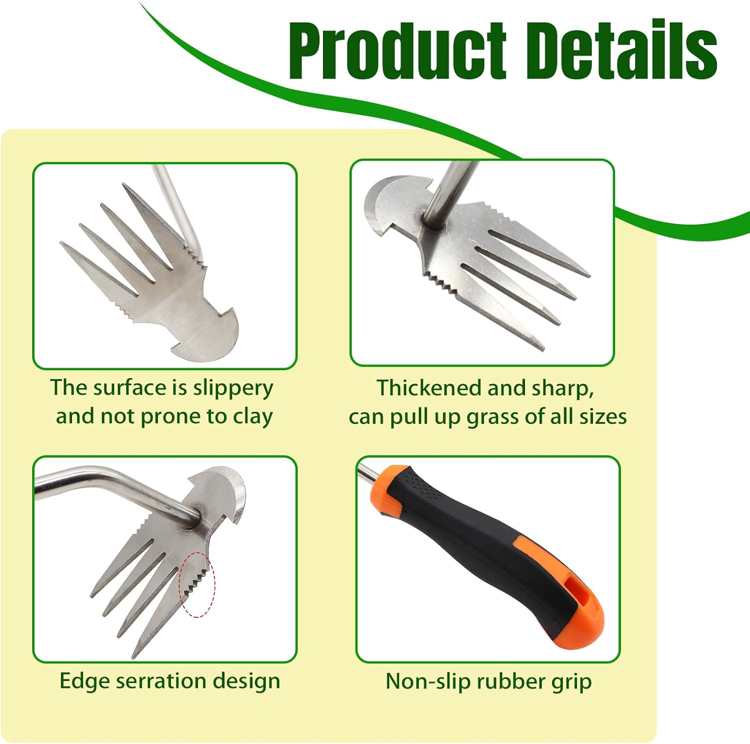 - The ergonomically designed four-tooth dual-purpose tool allows you to remove all types of weeds with ease, while the extended handle extends the range of use even further. The sharp working head tackles tight areas with ease and is suitable for a variety of environments.