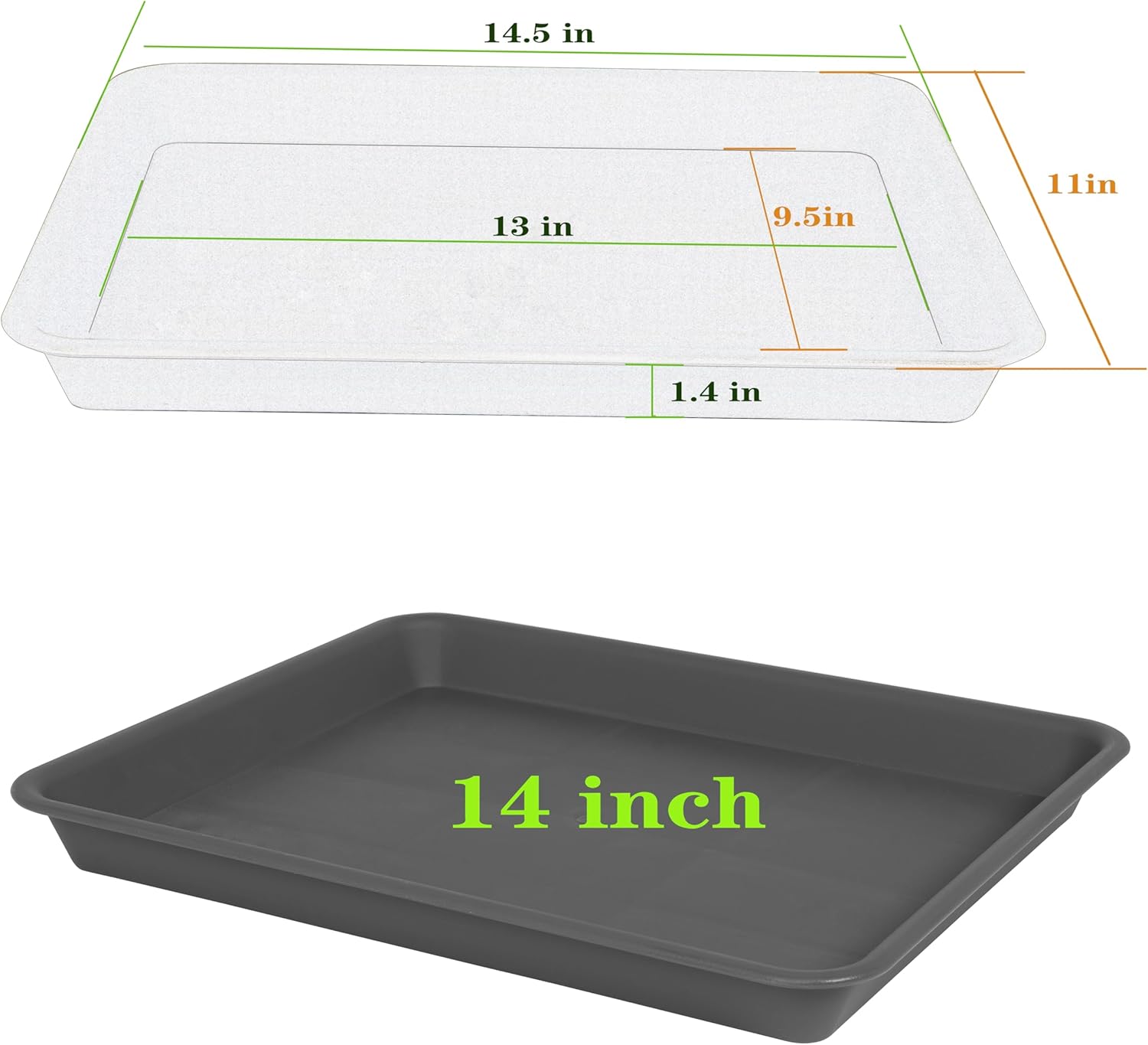 - PLANT TRAY VALUE - Plant drainage tray, 4 packs plant tray saucers rectangular, Plant Saucers for Indoors, inner diameter is 13 X 9.5 inch width and outer diameter is 14.5 x 11 inch width, 1.4'' Height, suitable for flower pot with bottom diameter less than 10 11 12 13 inches. Plant drainage trays for planter.