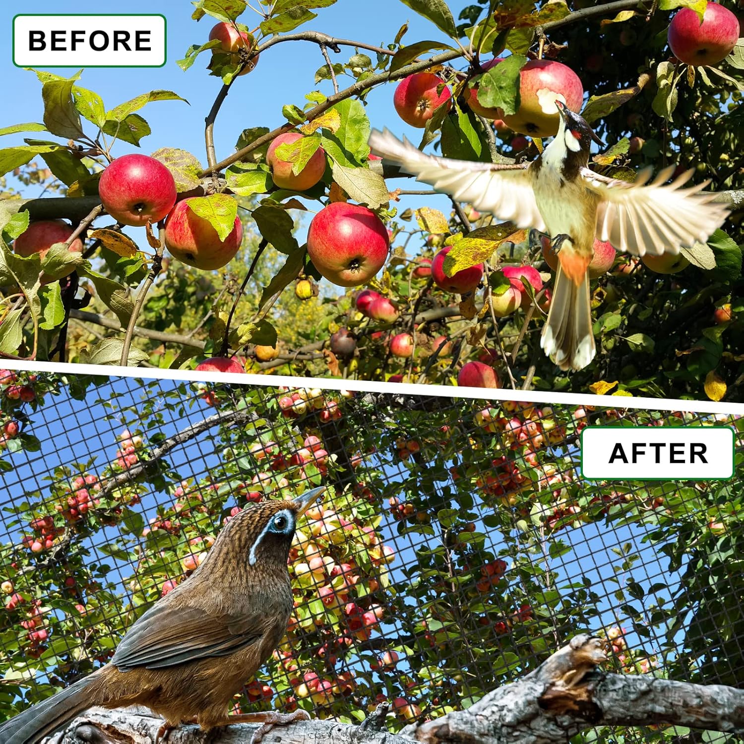 - 【Heavy Duty Bird Netting】 Our lightweight but heavy duty bird net is is made of nylon multifilament net which is UV-proof, this nylon netting won't tangle and tear easily, highly durable and reusable.