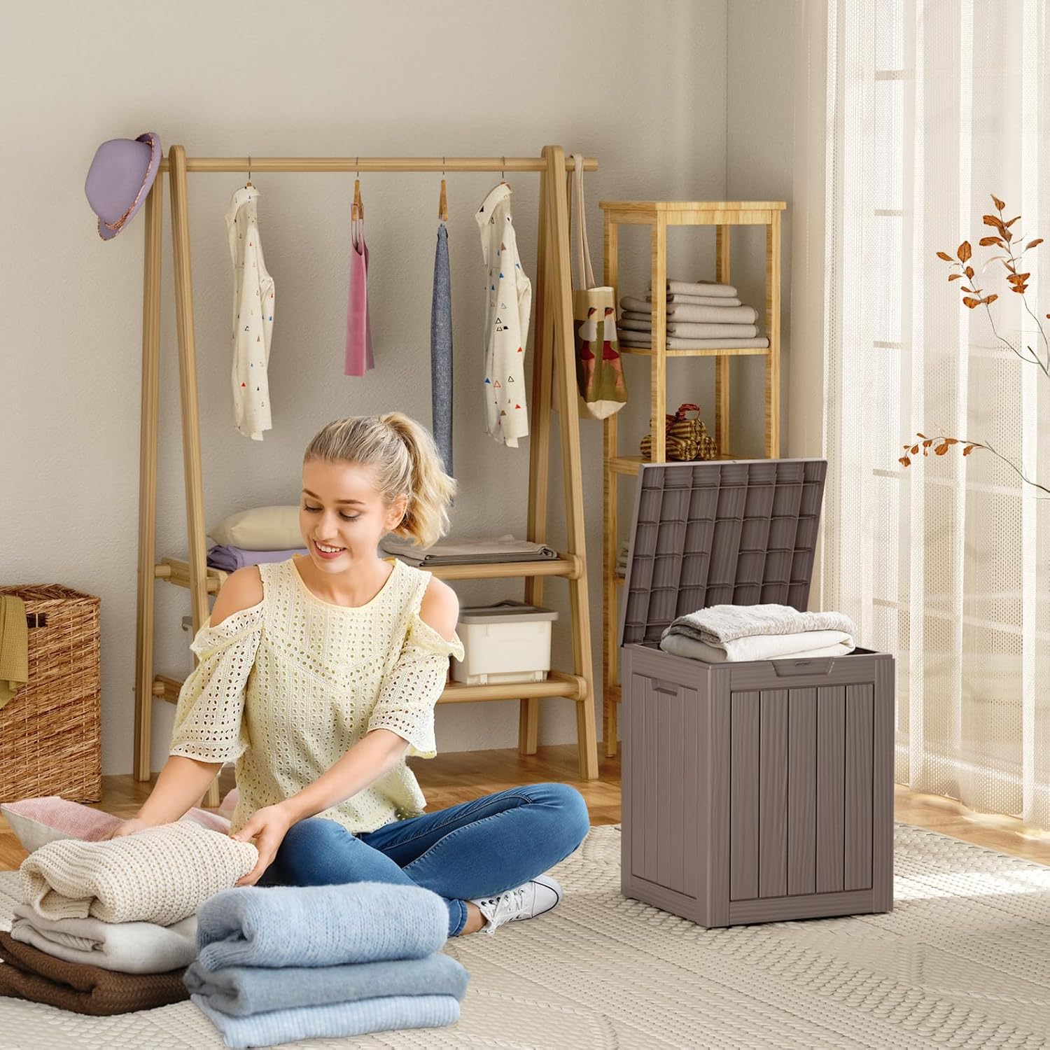 - TRANSFORM YOUR SPACE: Whether used indoors as a laundry deck storage box solution or outdoor storage for patio items like cushions, garden tools, and sports gear, this patio outdoor storage box excels. Its multi-functional design makes it suitable as a package delivery box, package box for porch, side table, patio seat, storage bench, or footstool
