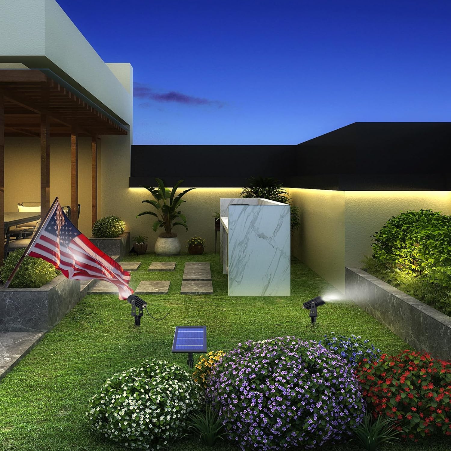 - Angle Adjustable Solar Lights .Natural White 5500K,Each Spot Avaible to Light Up Object Approximately 30Ft Distance