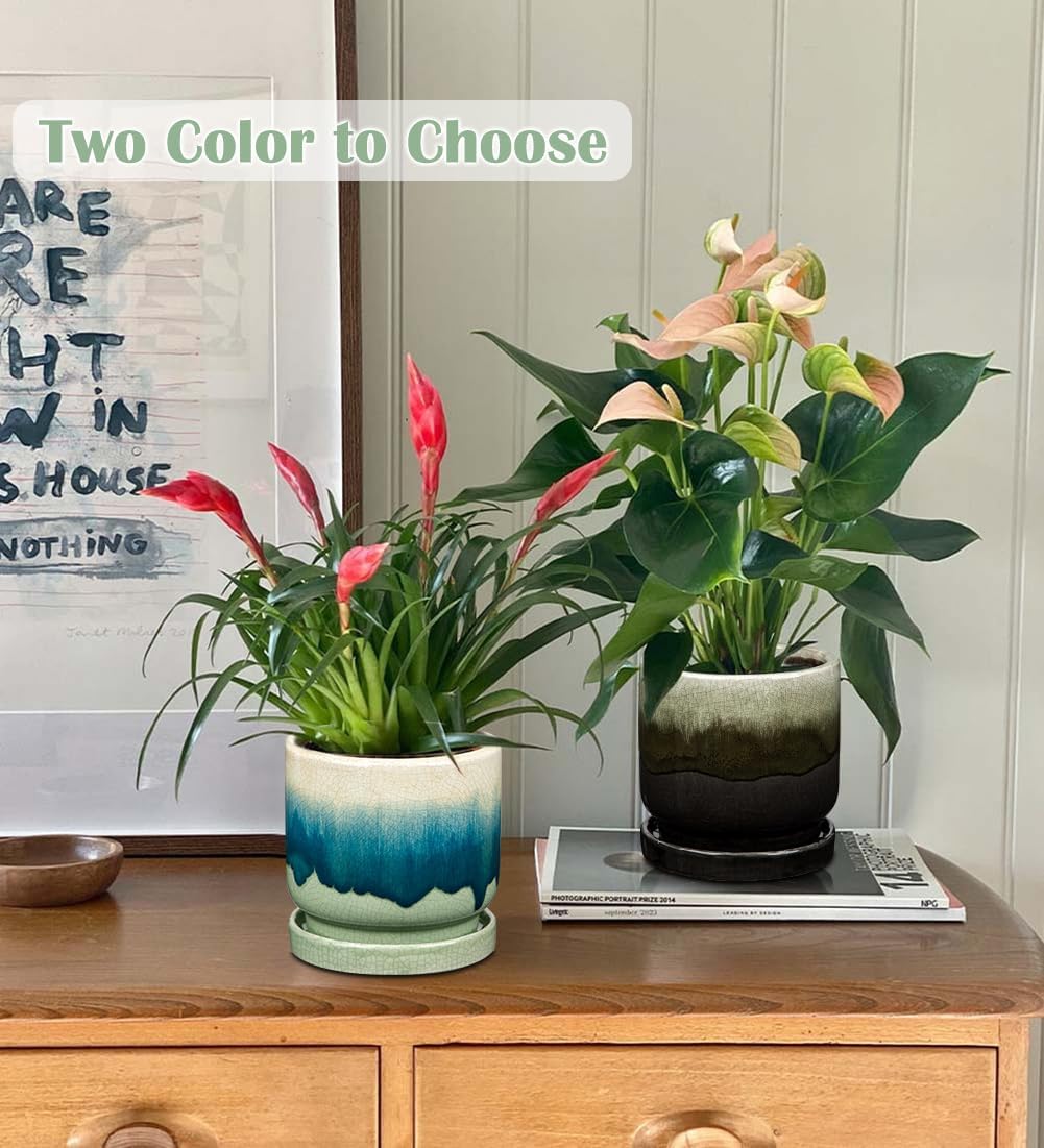 - Ceramic Plant Pot - Inspired by the colors of the dark sandy beach and the sea green hues of the waters, each plant pots indoor has gradient dark teal color on its surface, there has a natural color transition. Using superb glazing process and firing at high temperature, this small flower pots has ice cracked effect on the surface, exquisite and special, which making the house plant pots simply stunning. Its stylish appearance and minimalist design can fit for any home dΓ©cor style